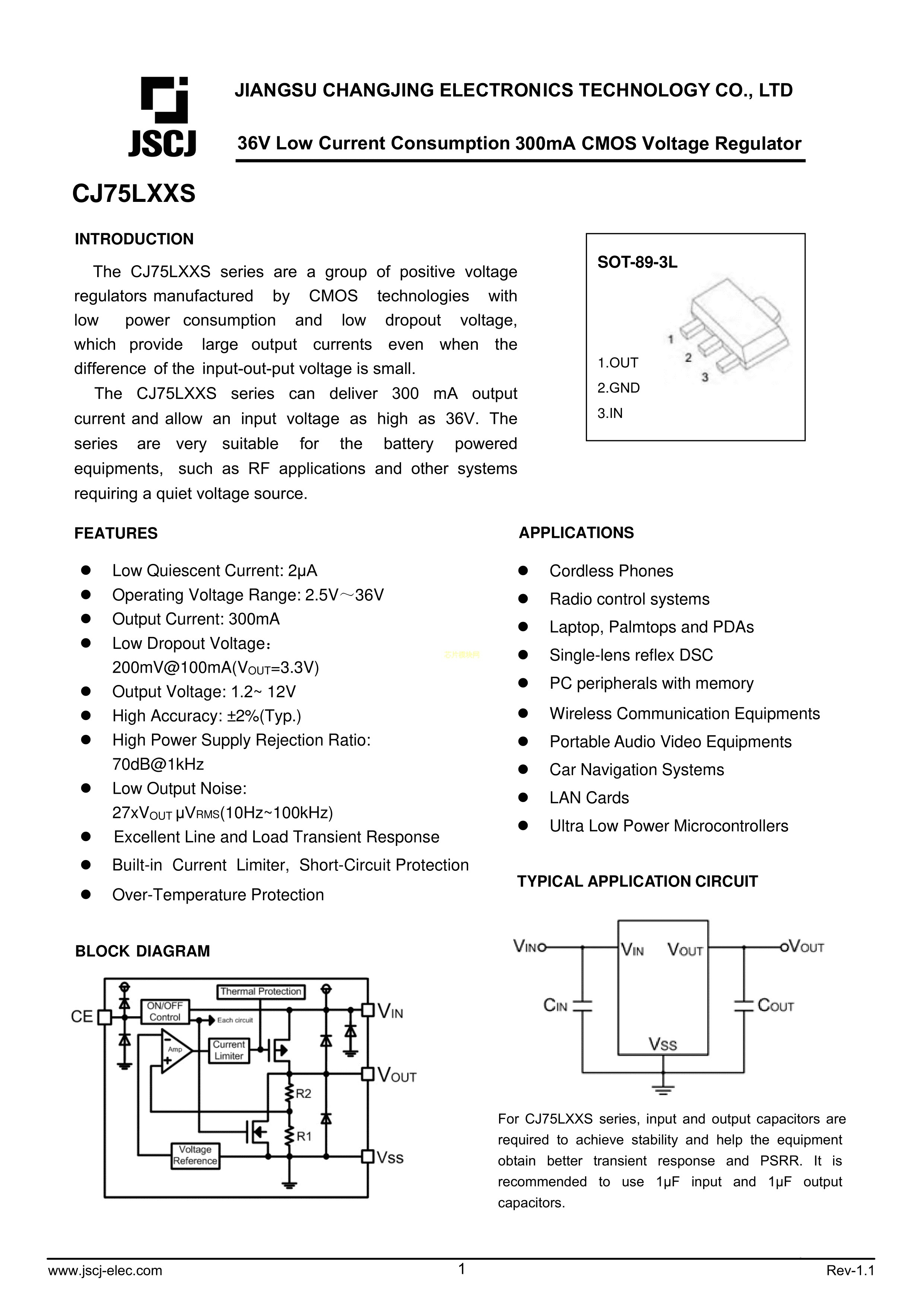 CJ75L05S数据手册SOT-89-3封装CJ(江苏长电-长晶)PDF规格书,中英文下载
