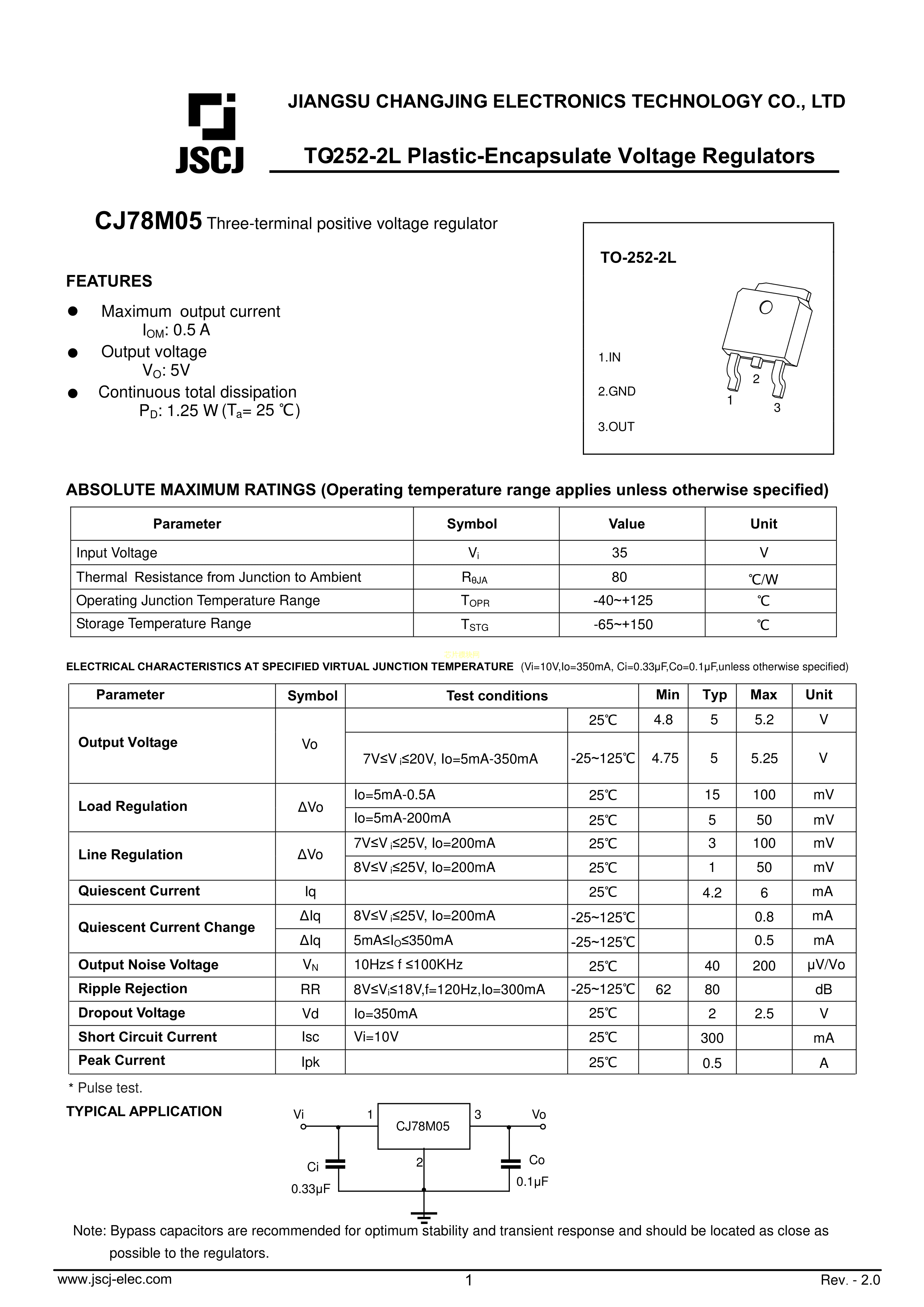 CJ78M05数据手册TO-252-2L封装CJ(江苏长电-长晶)PDF规格书,中英文下载