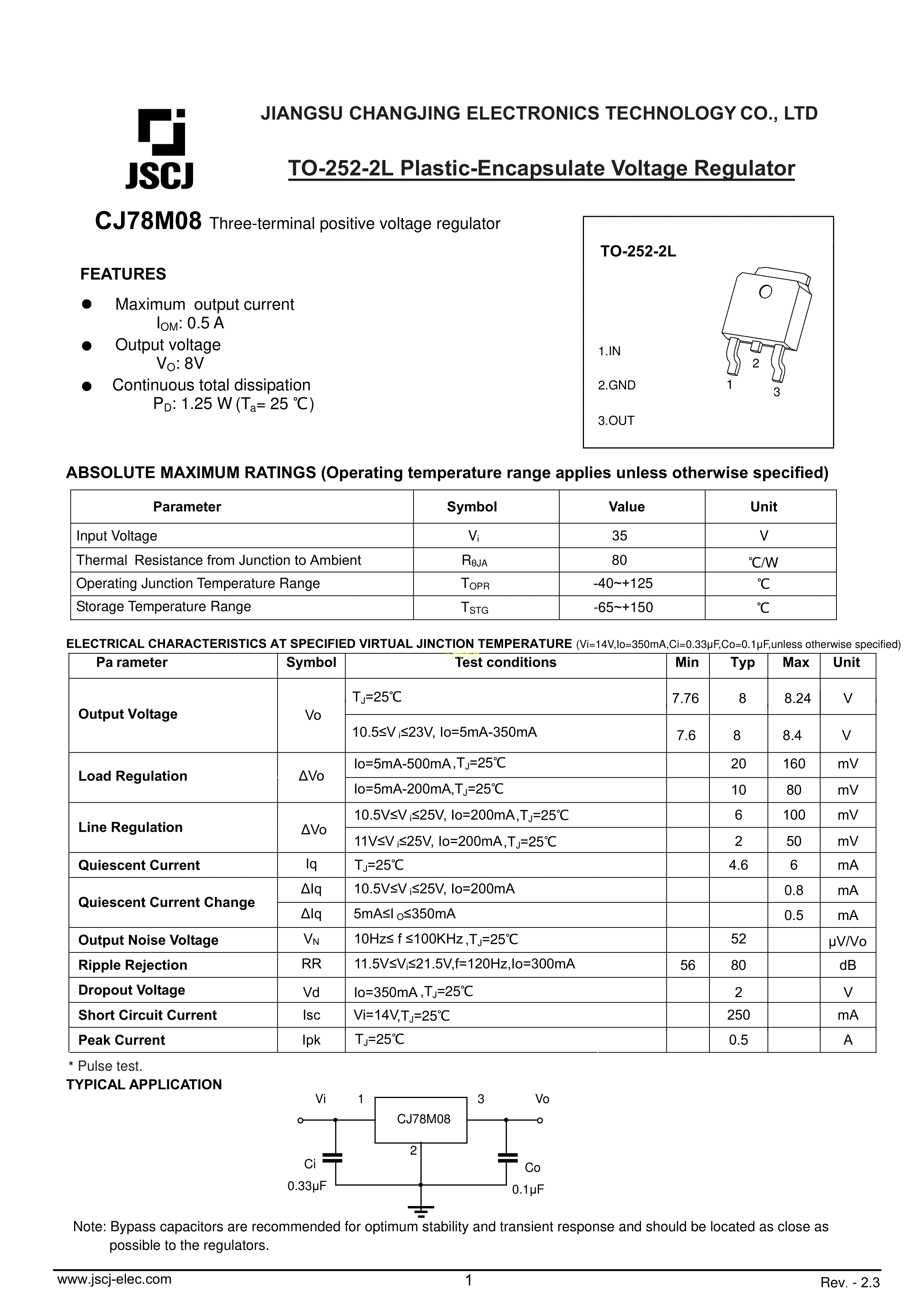 CJ78M08数据手册TO-252-2L封装CJ(江苏长电-长晶)PDF规格书,中英文下载