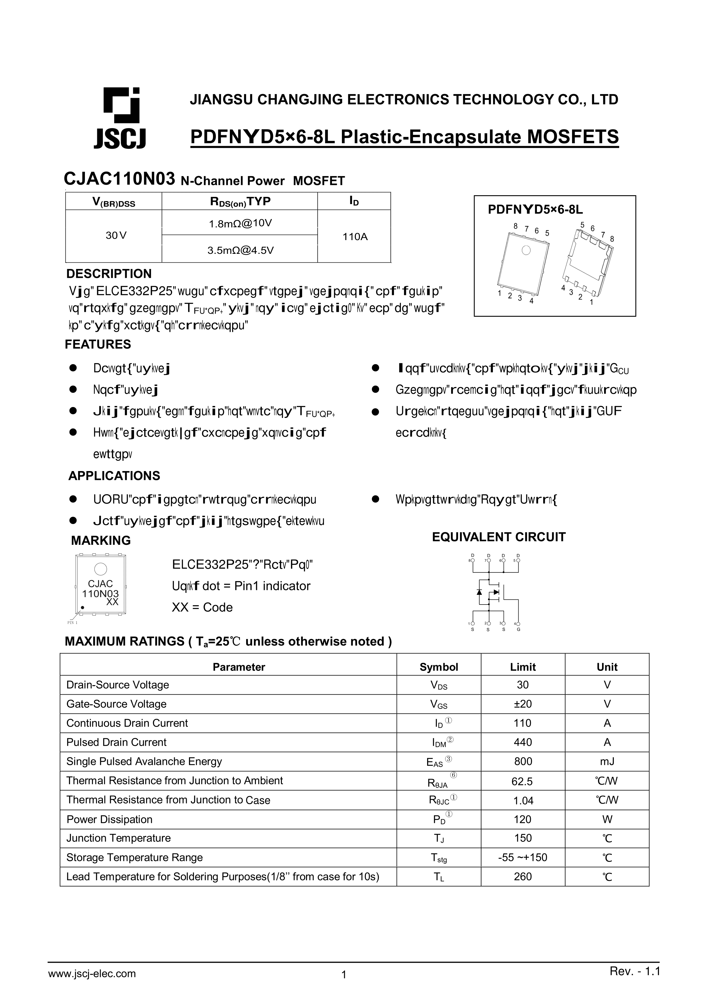 CJAC110N03数据手册PDFNWB5x6-8L封装CJ(江苏长电-长晶)PDF规格书,中英文下
