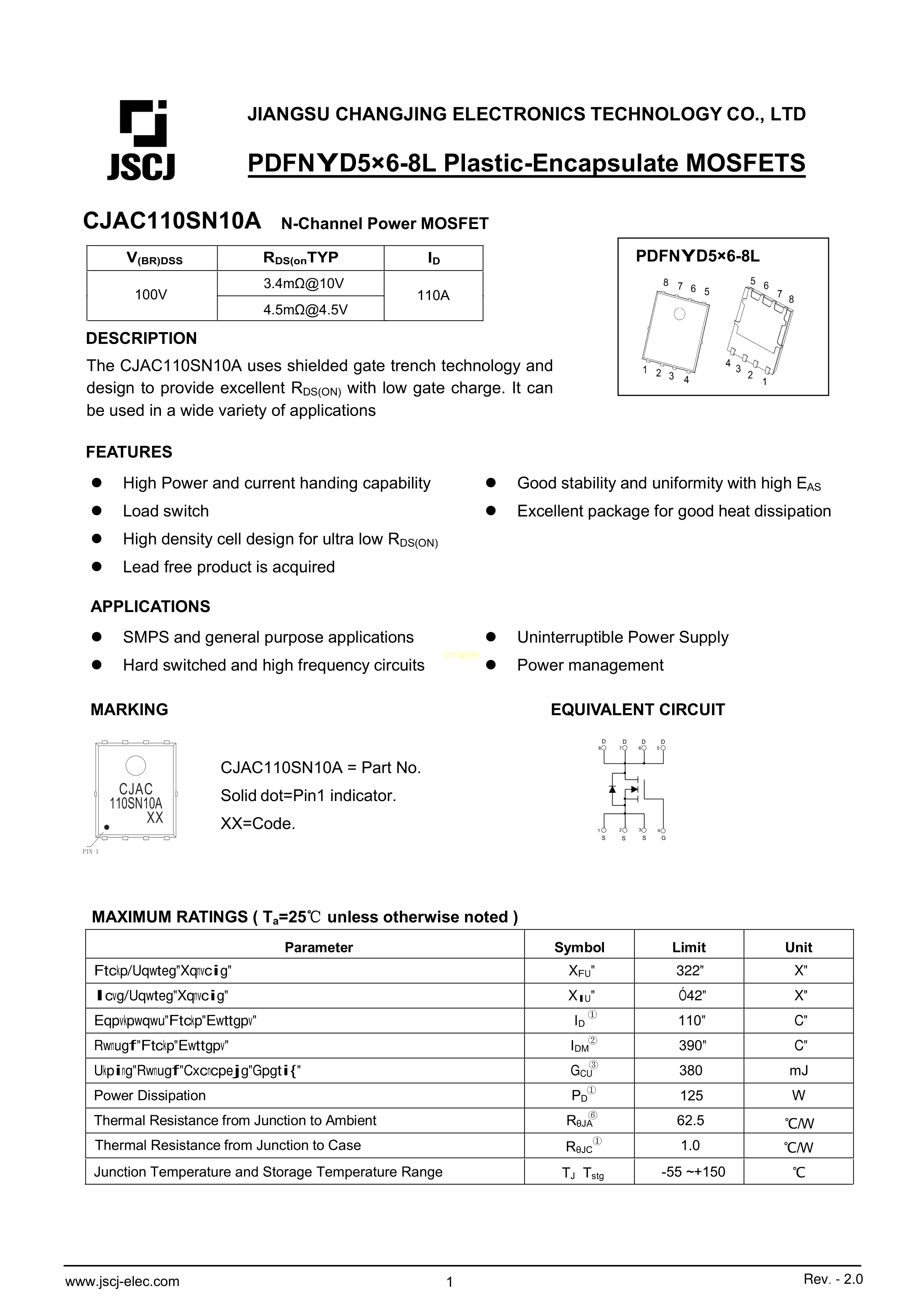 CJAC110SN10A数据手册PDFNWB5x6-8L封装CJ(江苏长电-长晶)PDF规格书,中英文下载