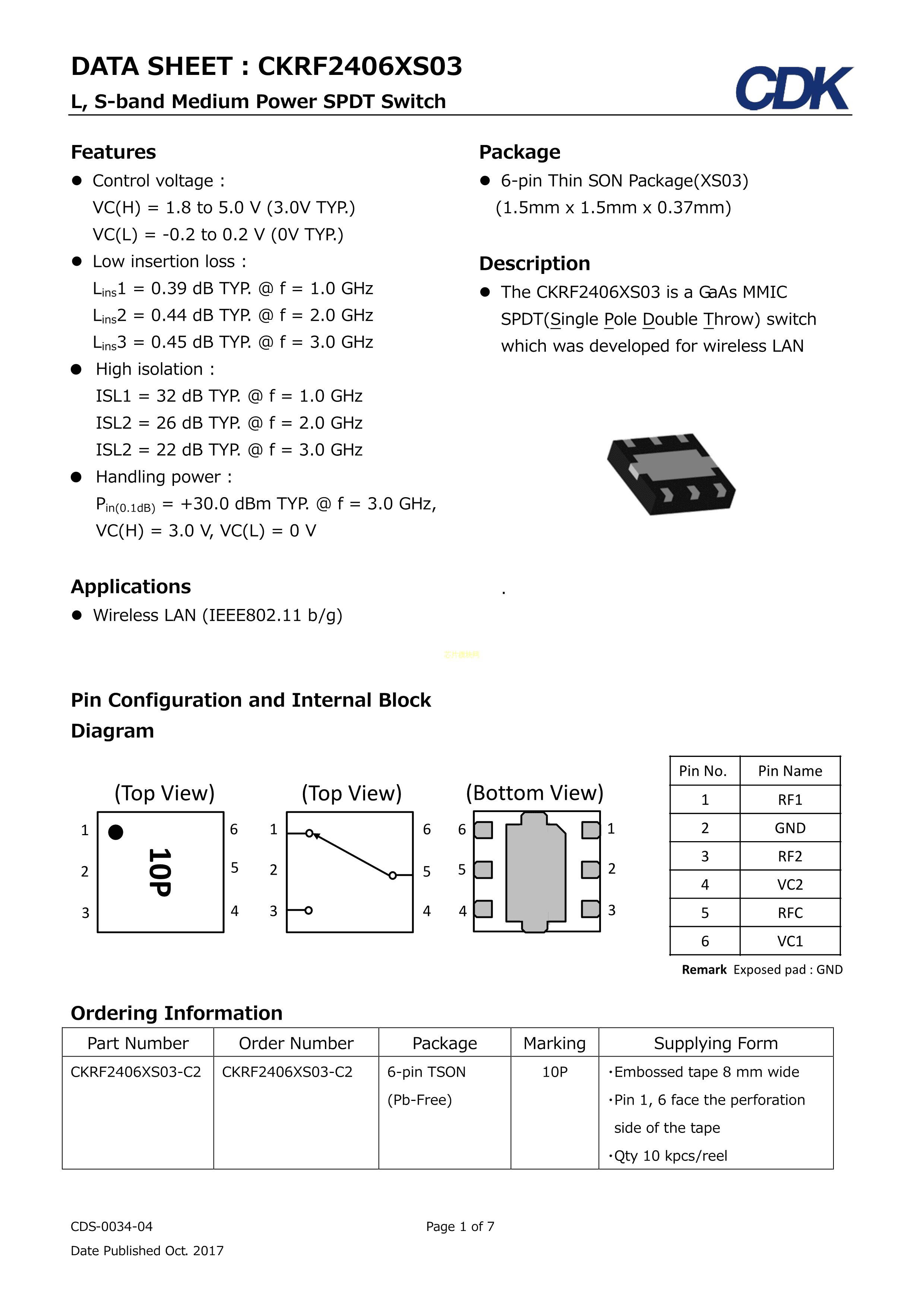 CKRF2406XS03-C2数据手册TSON-6封装CDKPDF规格书,中英文下载