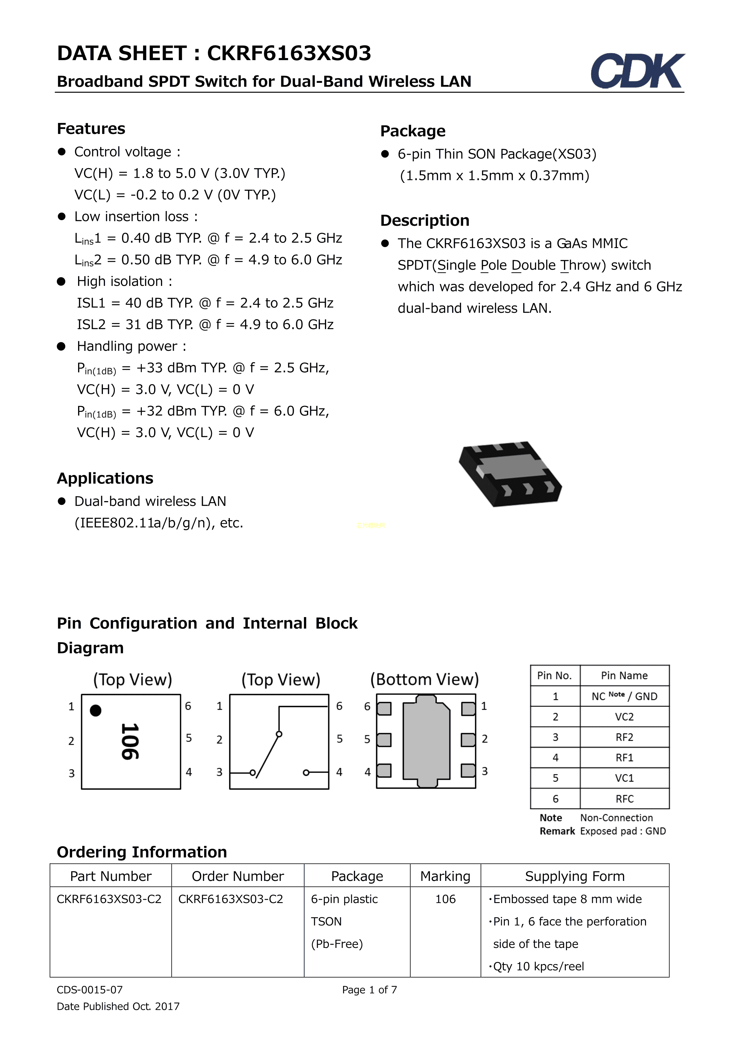 CKRF6163XS03-C2数据手册TSON-6封装CDKPDF规格书,中英文下载
