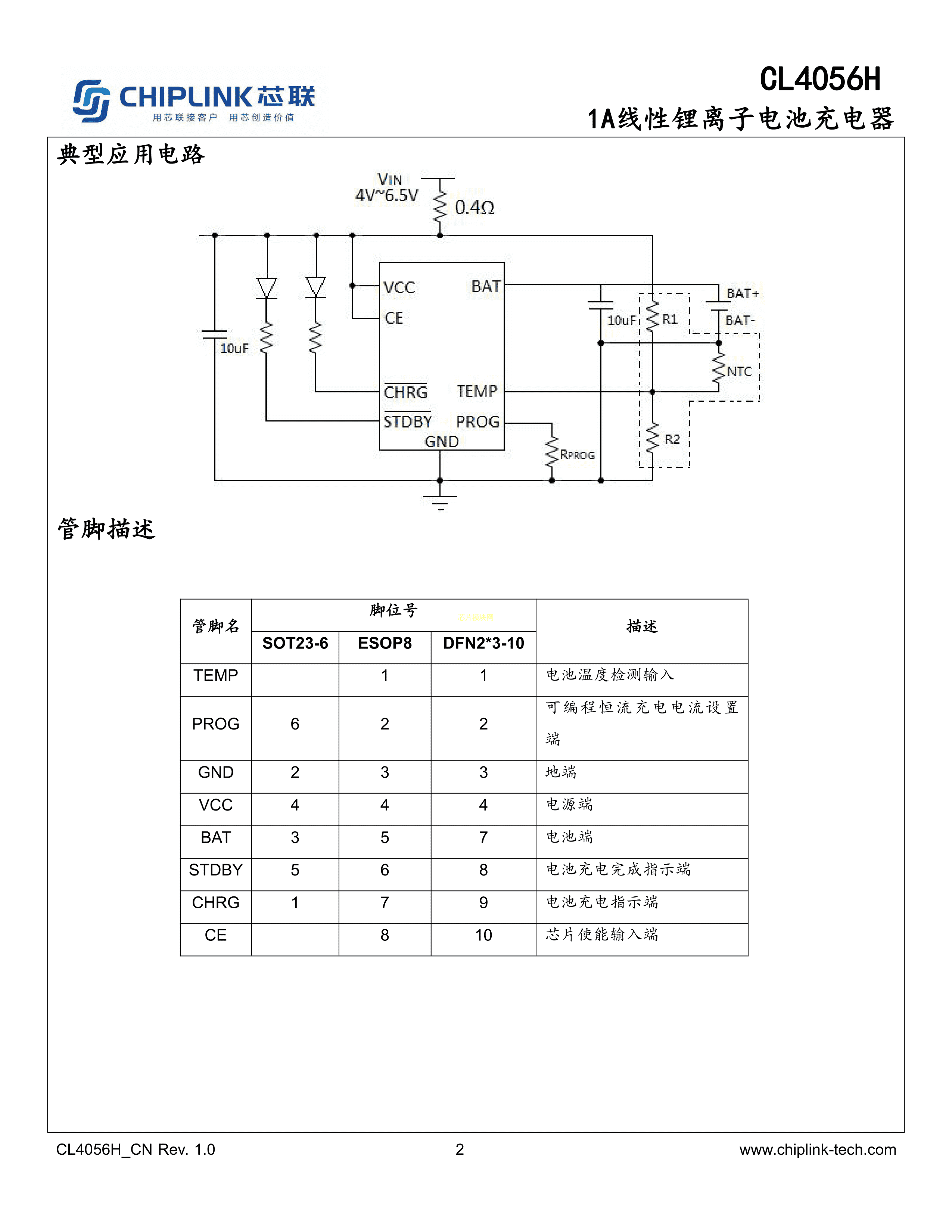 CL4056H数据手册ESOP8封装CHIPLINK(芯联)PDF规格书,中英文下载