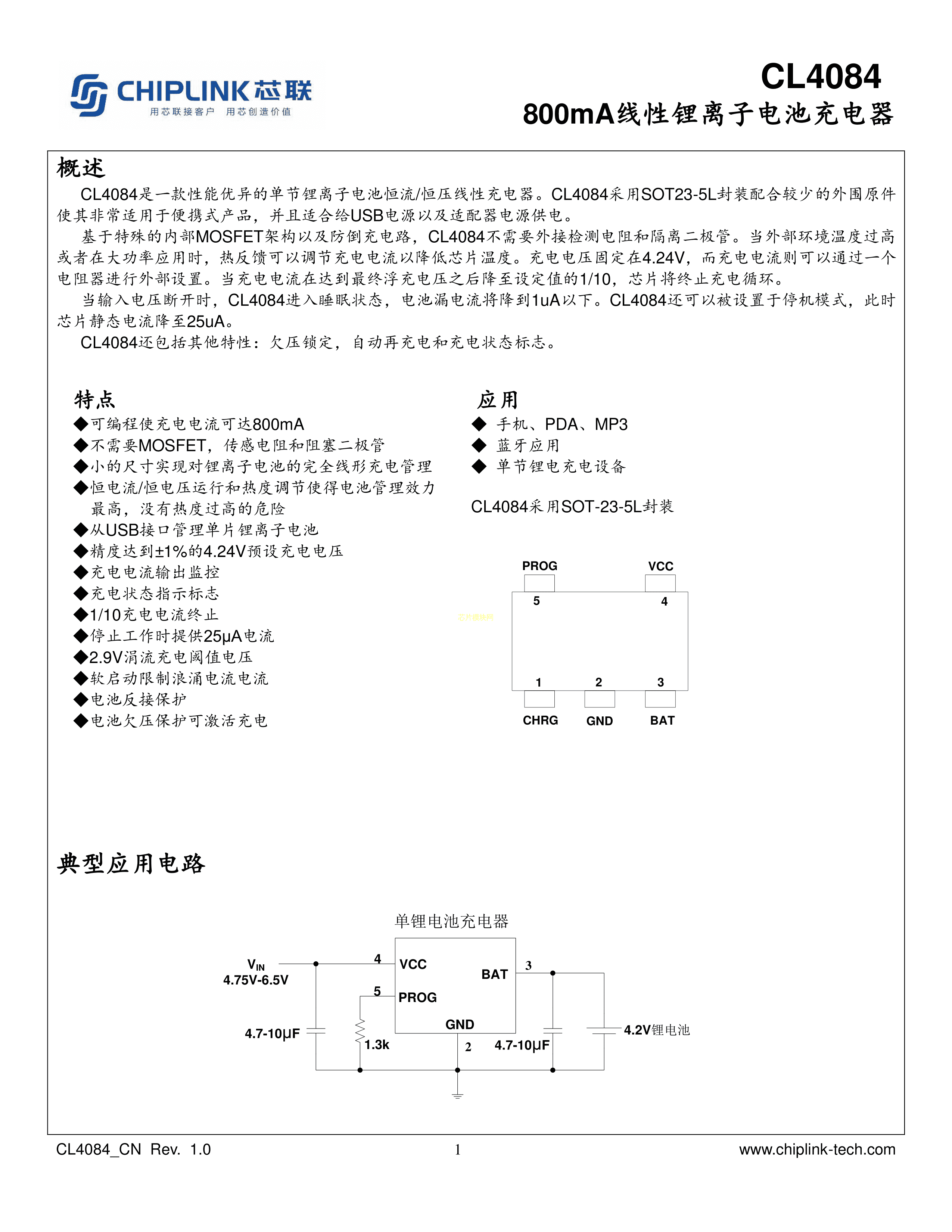 CL4084数据手册SOT23-5L封装CHIPLINK(芯联)PDF规格书,中英文下载