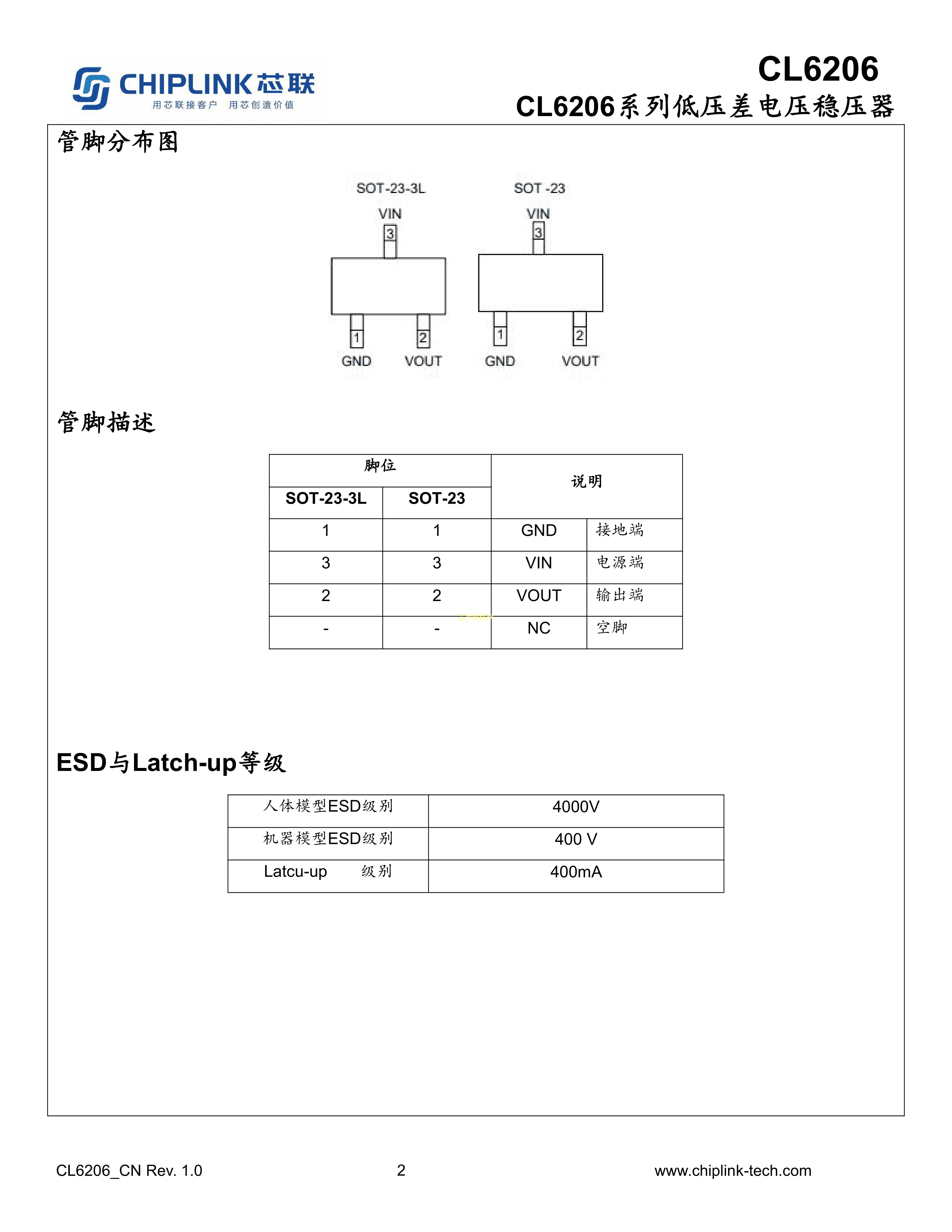 CL6206A30S3M数据手册SOT23封装CHIPLINK(芯联)PDF规格书,中英文下载