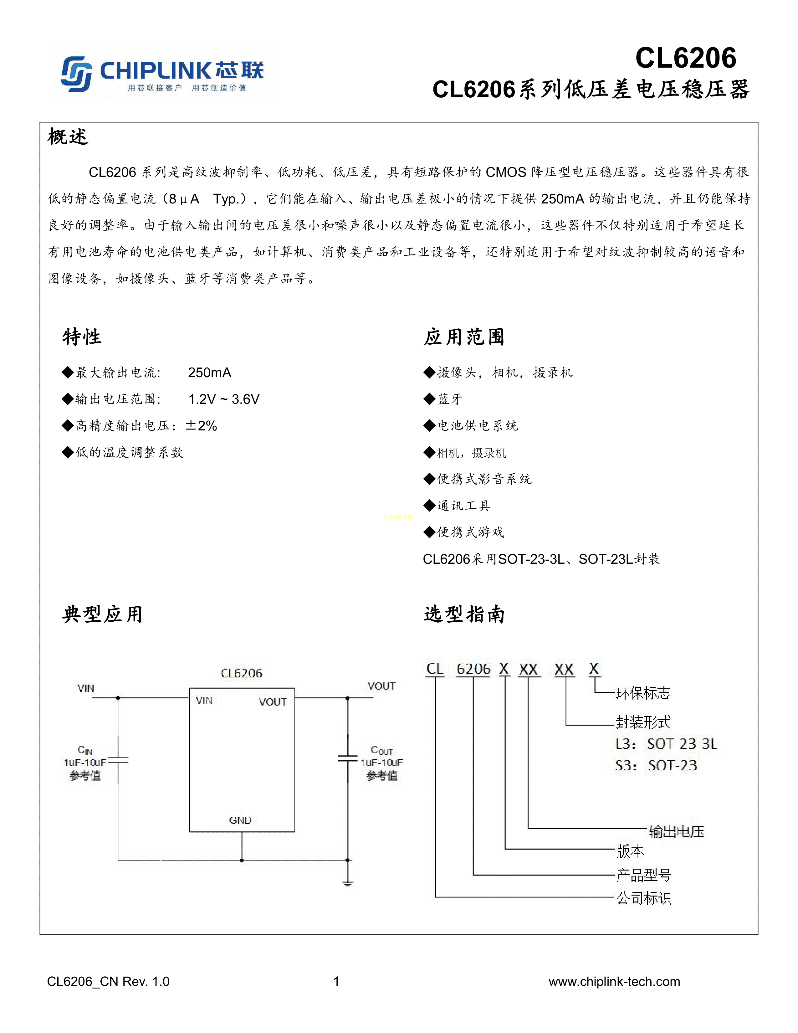 CL6206A33S3M数据手册SOT23封装CHIPLINK(芯联)PDF规格书,中英文下载