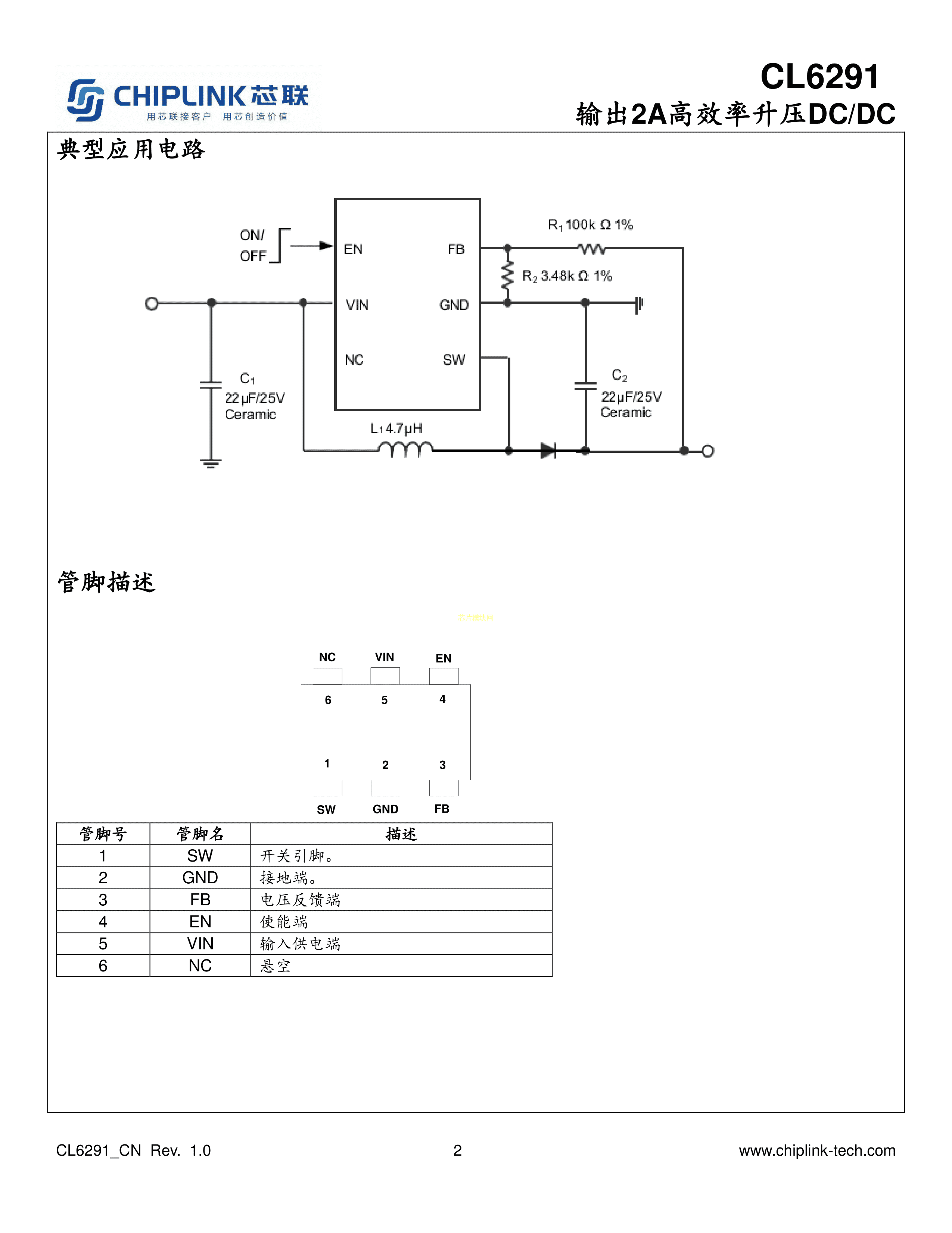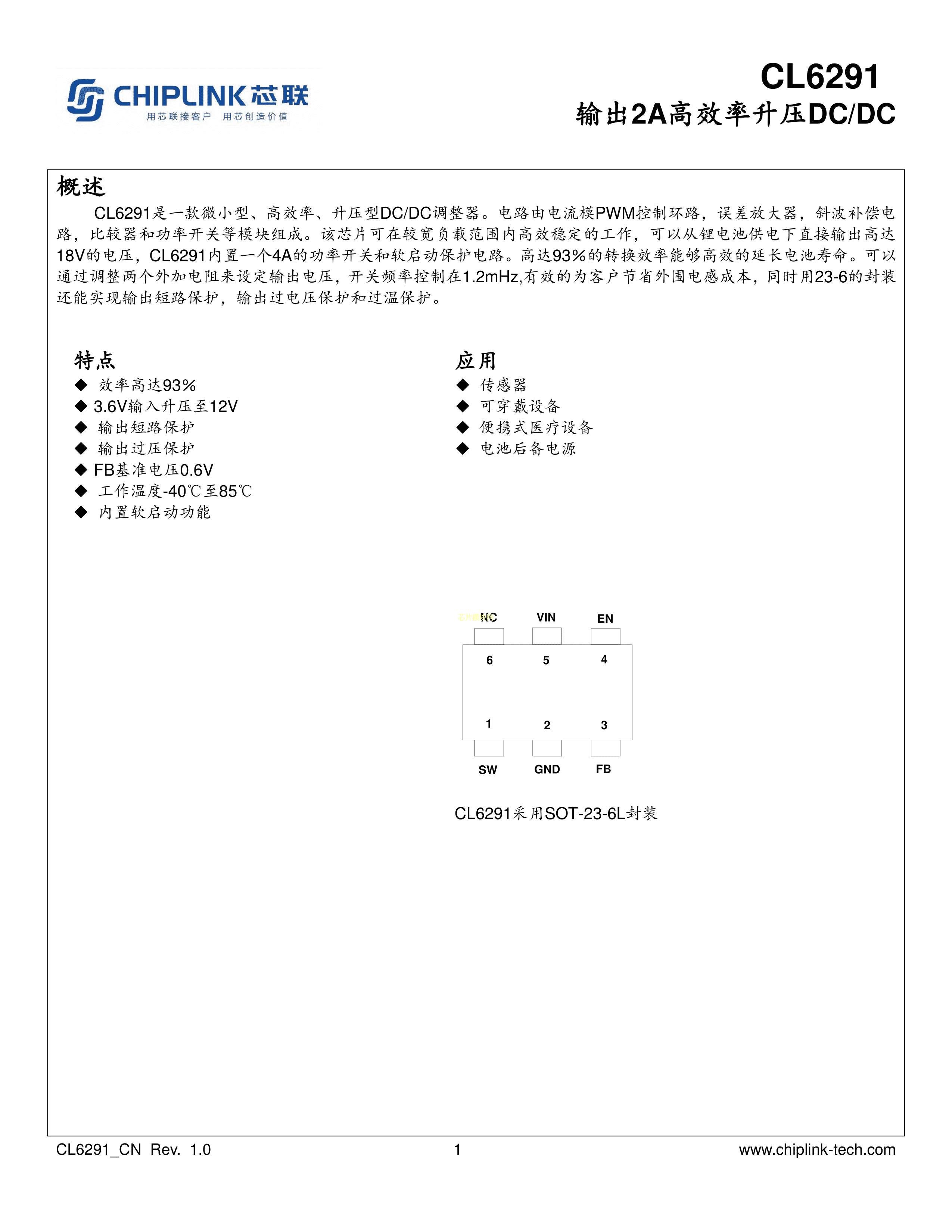 CL6291数据手册SOT-23-6封装CHIPLINK(芯联)PDF规格书,中英文下载
