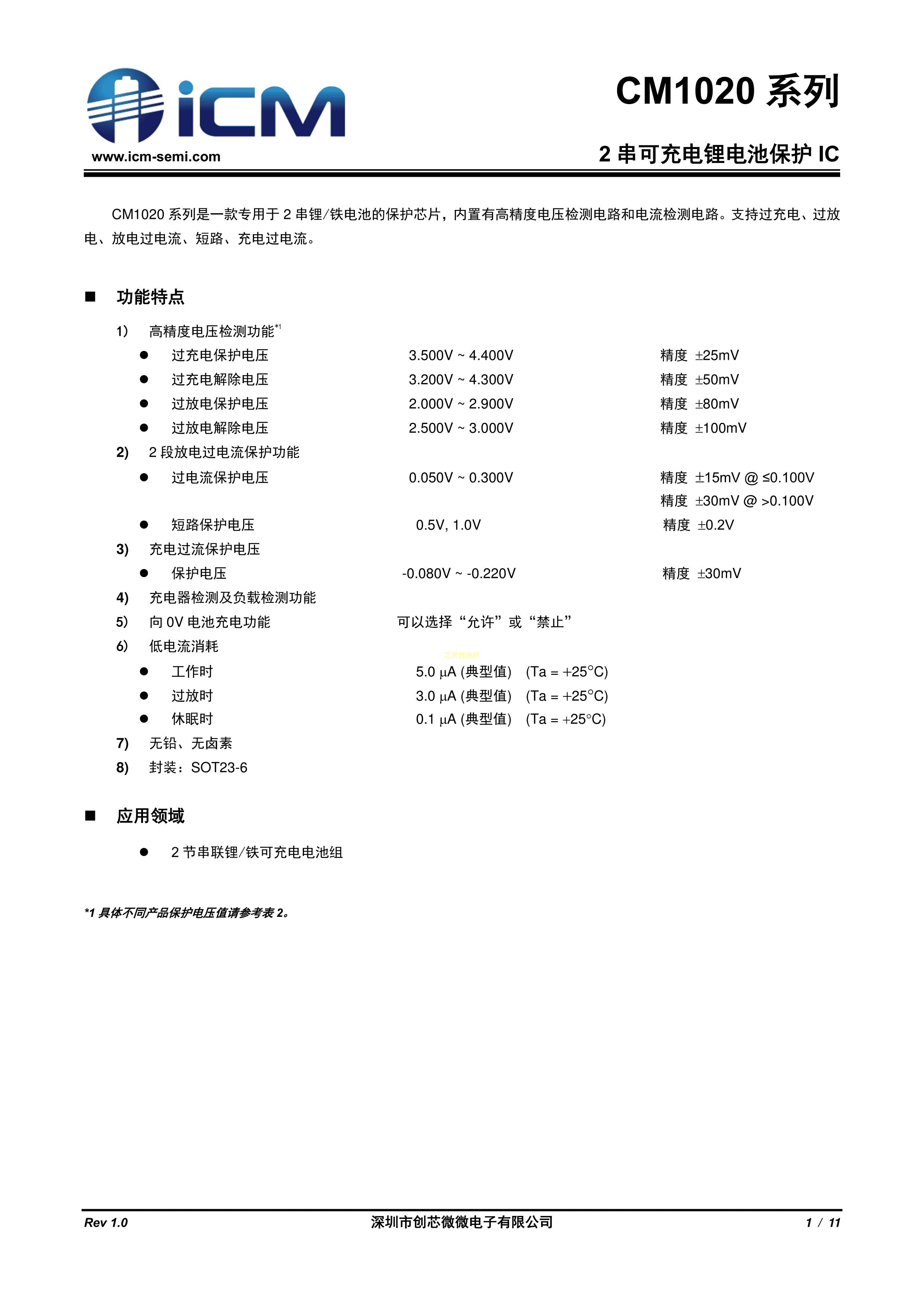 CM1020-C数据手册SOT-23-6封装iCM(创芯微)PDF规格书,中英文下载