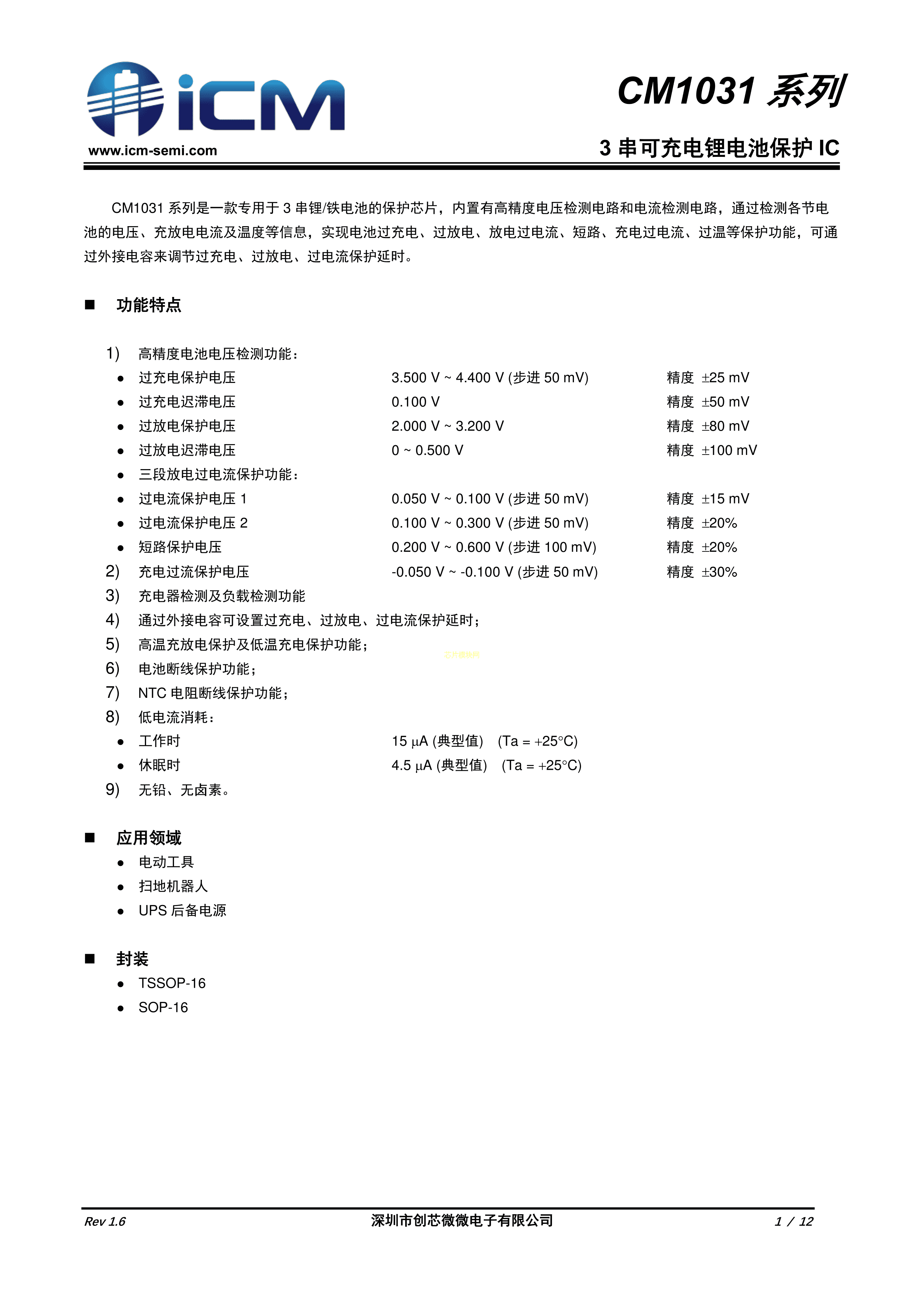 CM1031-ET数据手册TSSOP-16封装iCM(创芯微)PDF规格书,中英文下载
