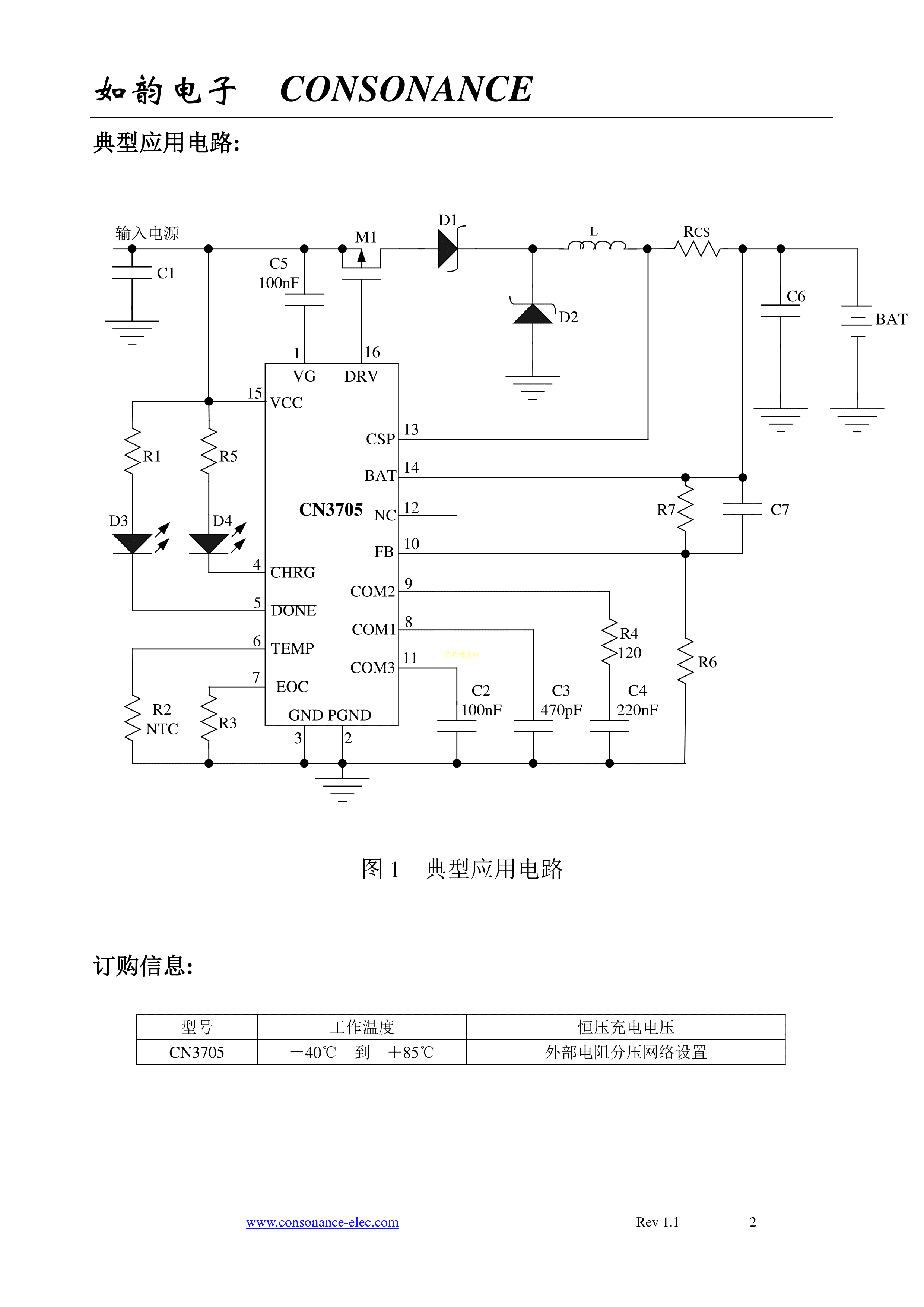 CN3705数据手册TSSOP-16封装CONSONANCE(上海如韵)PDF规格书,中英文下载