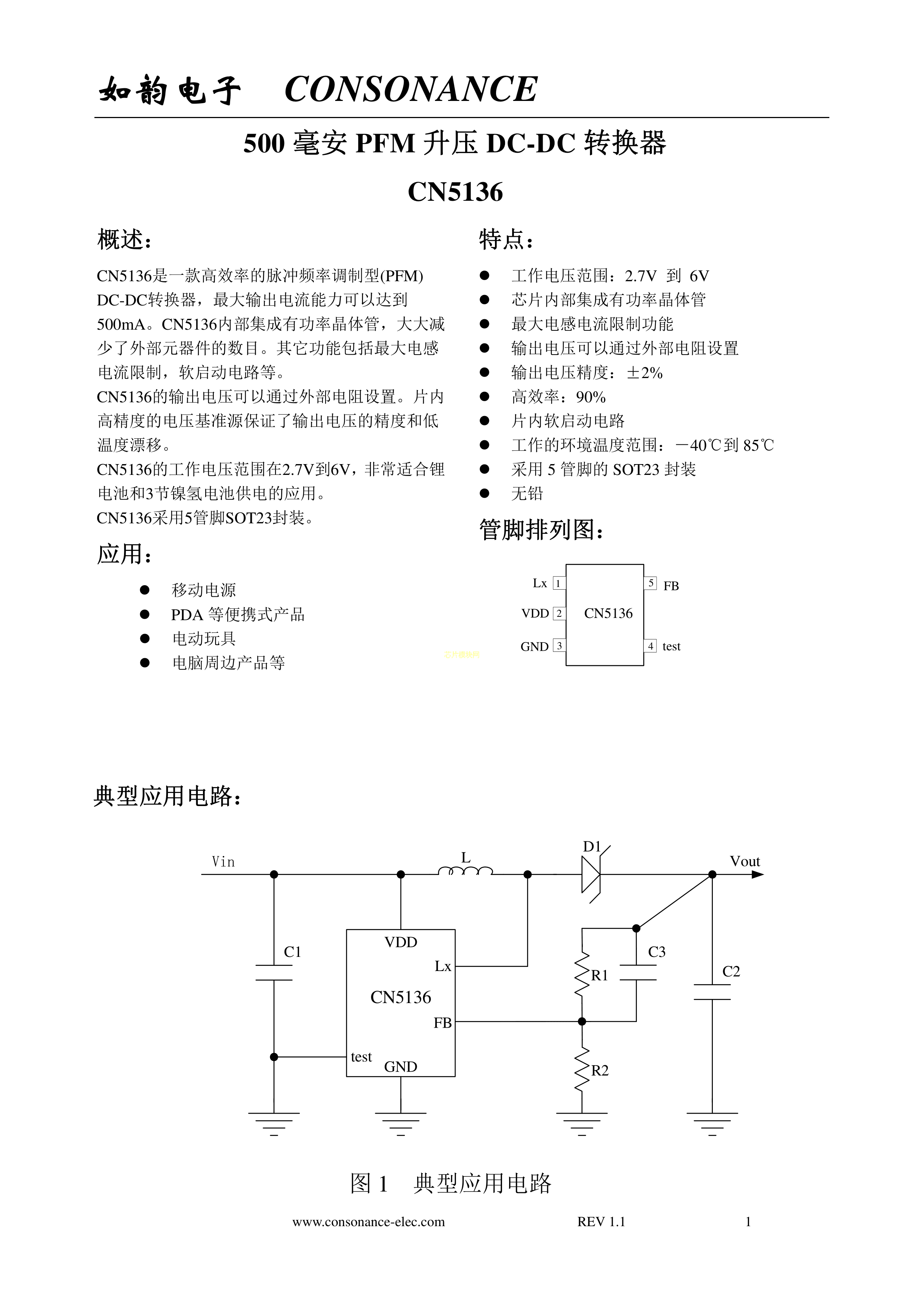 CN5136数据手册SOT-23-5封装CONSONANCE(上海如韵)PDF规格书,中英文下载