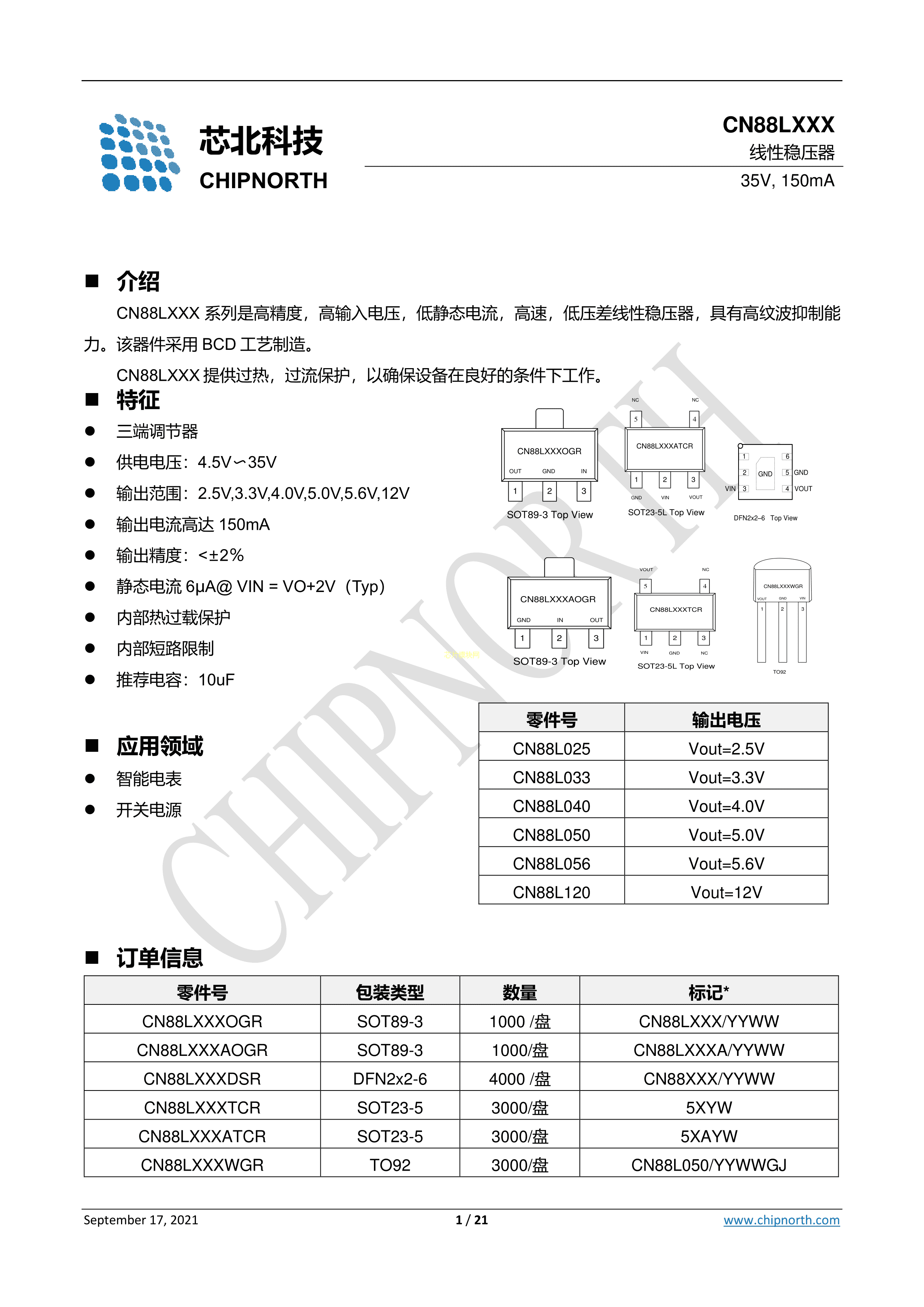 CN88L040OGR数据手册SOT89-3封装CNTECH(芯北科技)PDF规格书,中英文下载