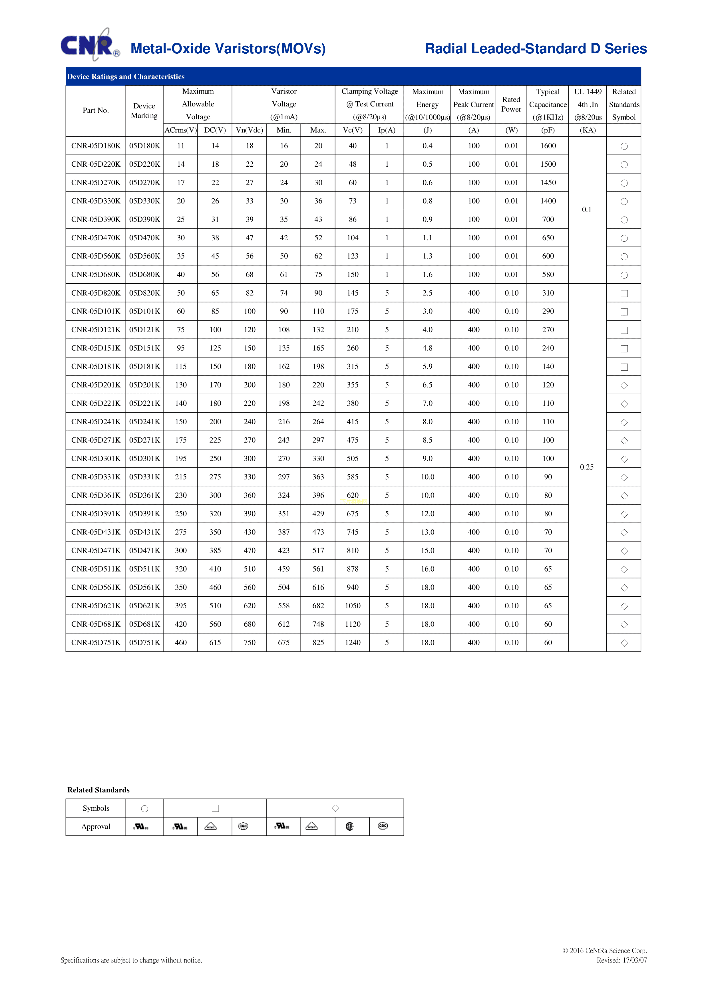 CNR-07D391K数据手册径向引线封装CNR(舜全)PDF规格书,中英文下载