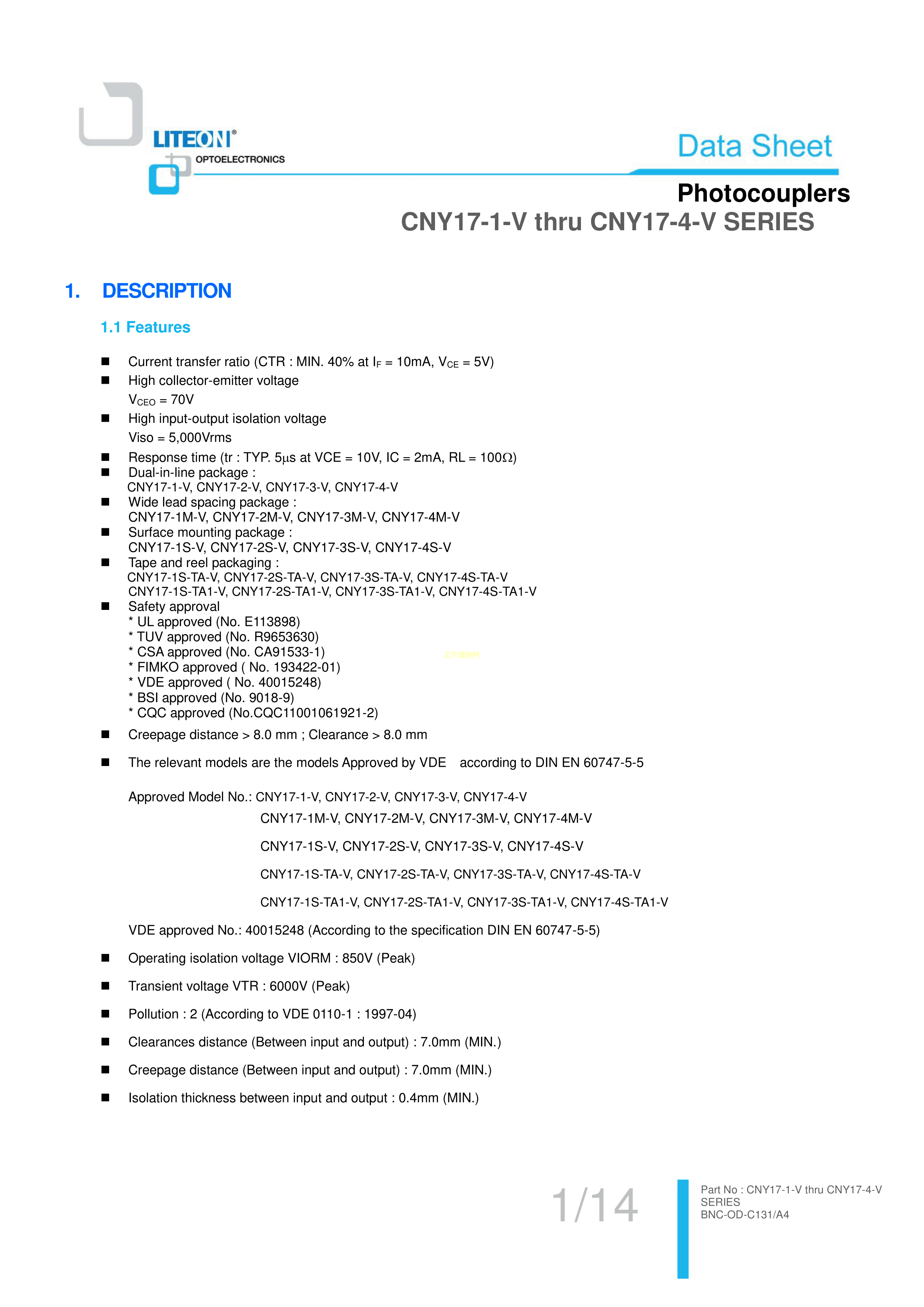 CNY17-2数据手册DIP-6封装LITEON(台湾光宝)PDF规格书,中英文下载