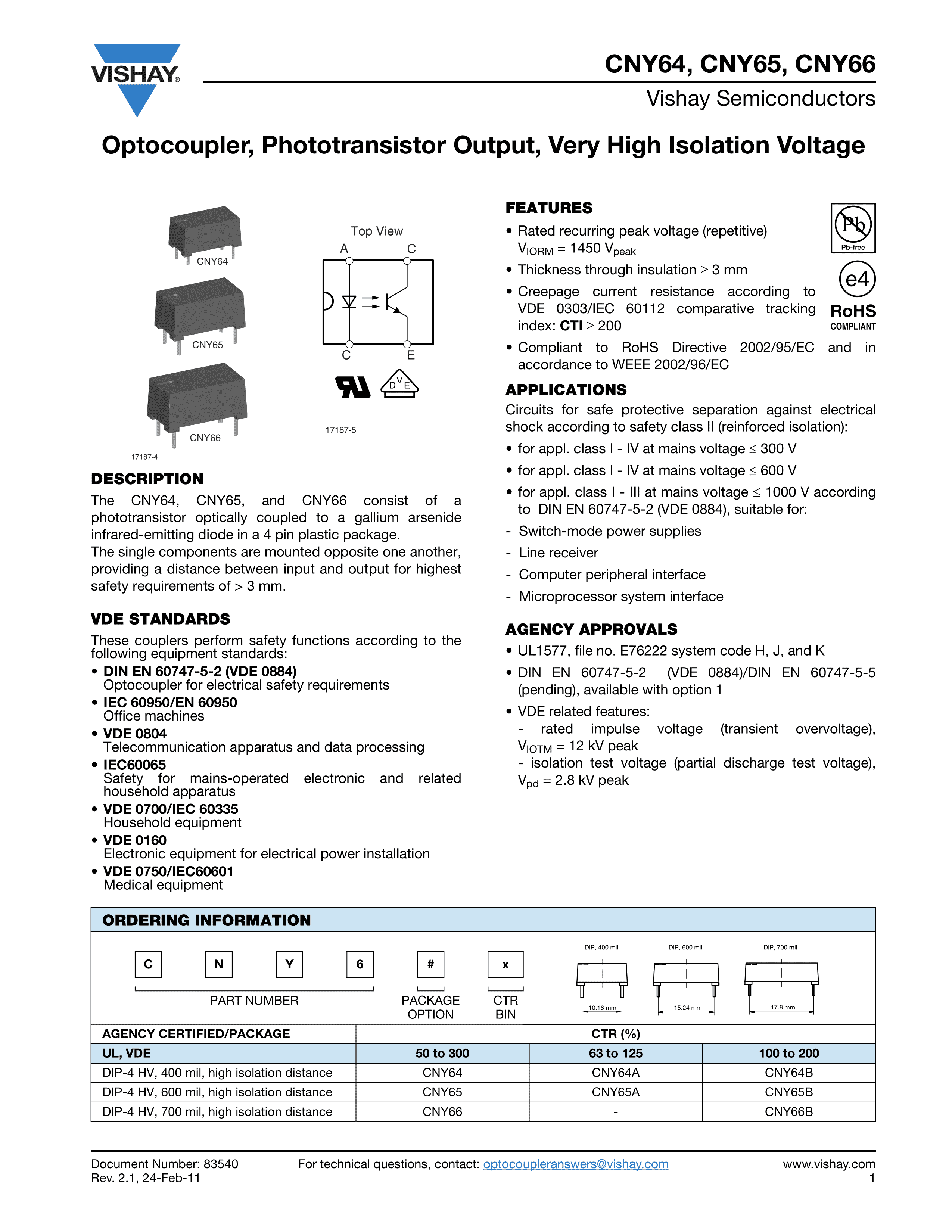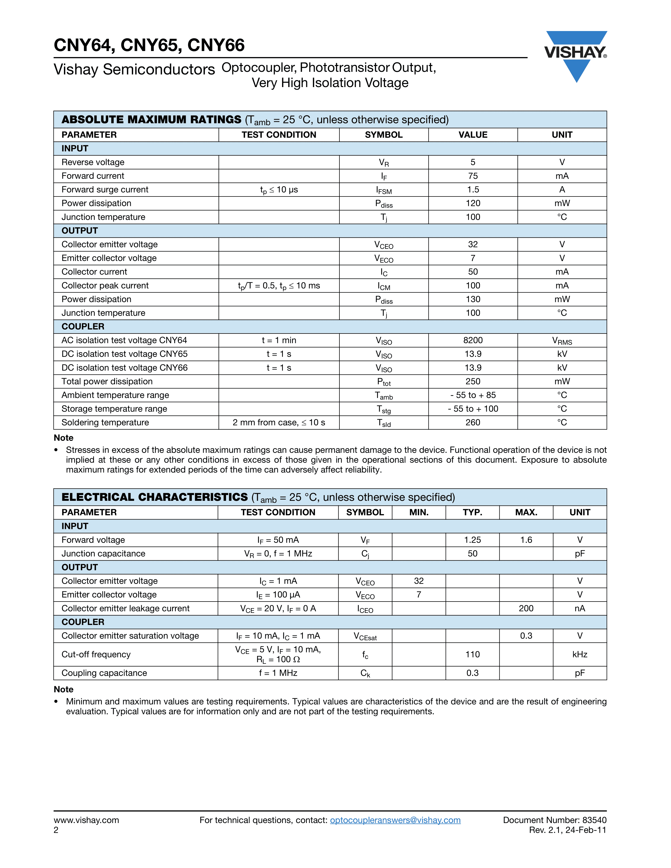 CNY65B数据手册插件封装VISHAY(威世)PDF规格书,中英文下载