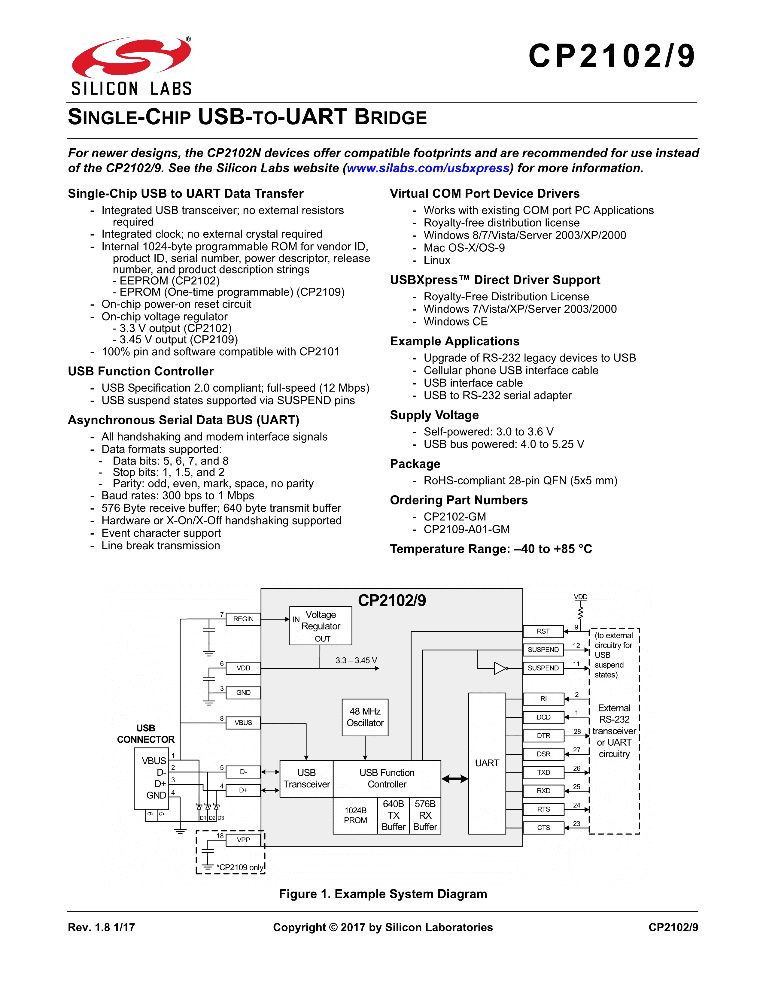 CP2102-GM数据手册QFN-28封装SILICON LABS(芯科)PDF规格书,中英文下载