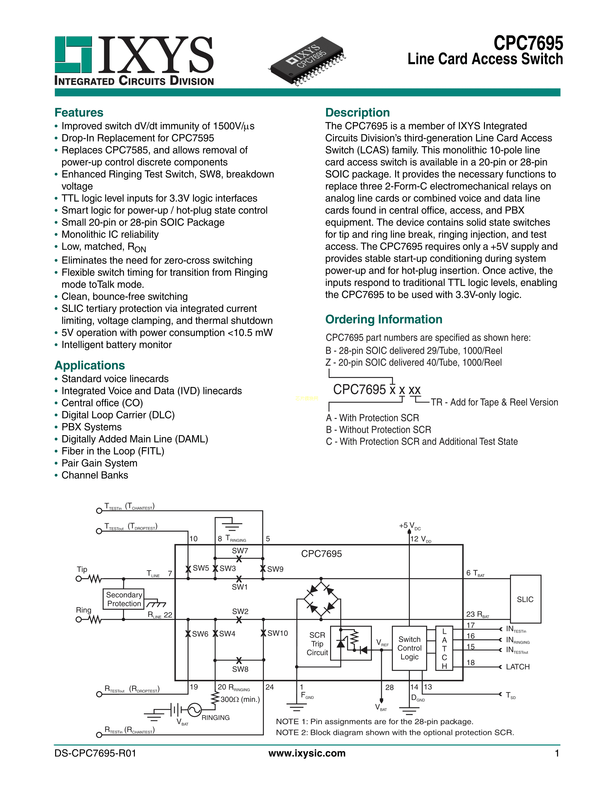 CPC7695ZB数据手册SOIC-20封装IXYSPDF规格书,中英文下载