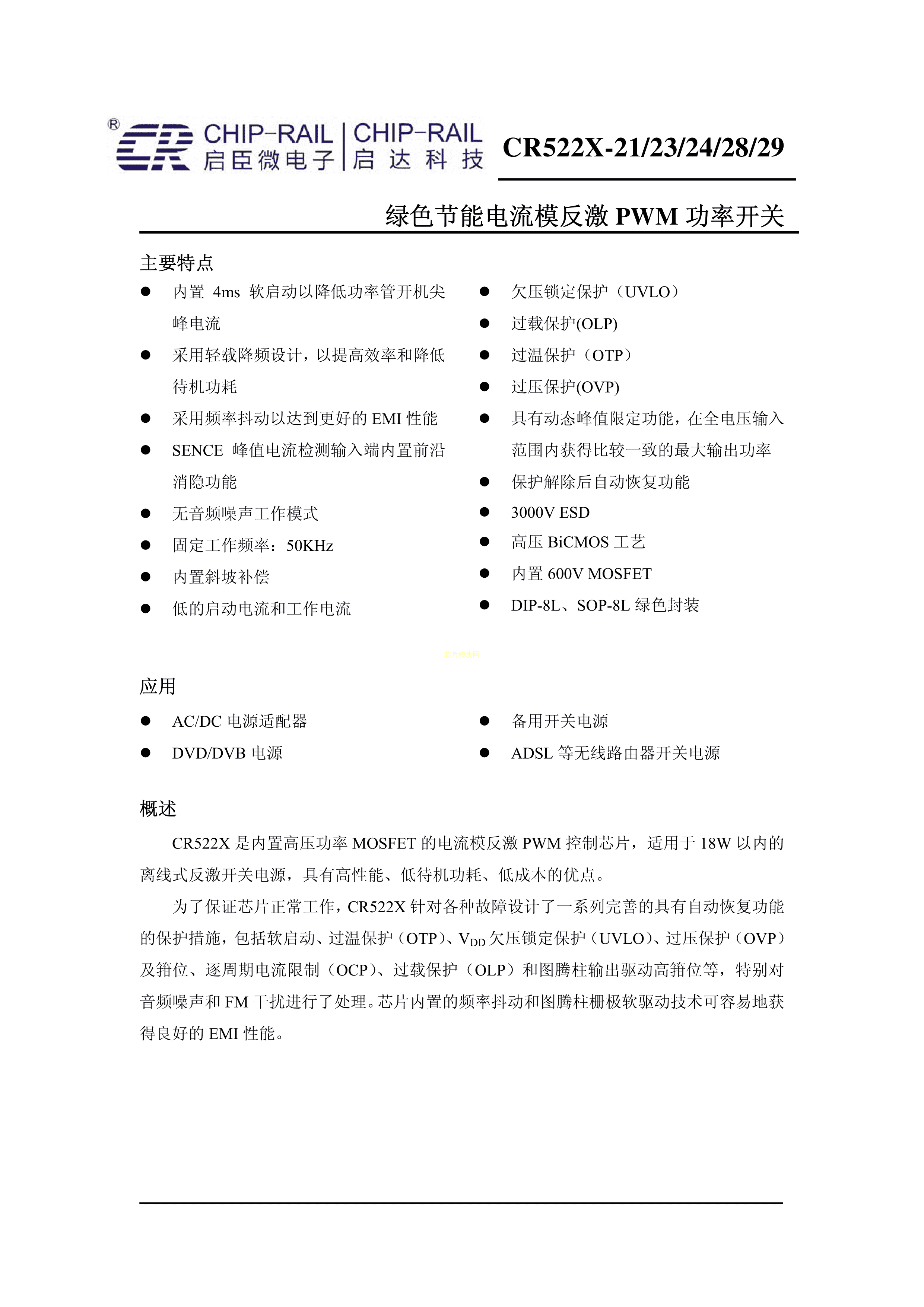 CR5229数据手册DIP-8封装Chip-Rail(启臣微)PDF规格书,中英文下载