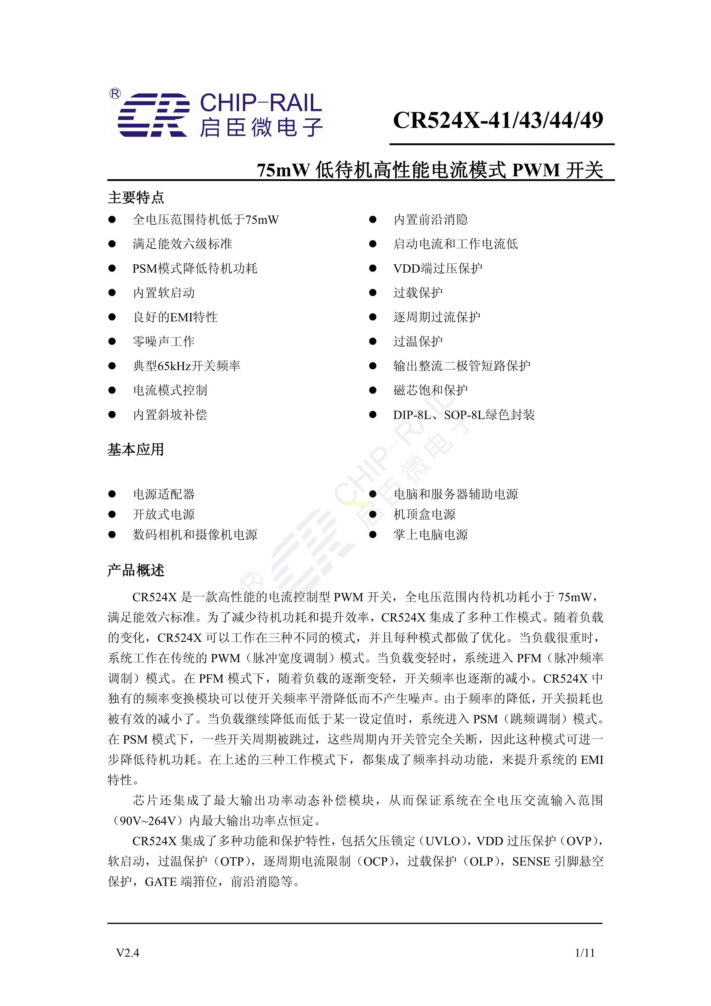 CR5244数据手册DIP-8封装Chip-Rail(启臣微)PDF规格书,中英文下载