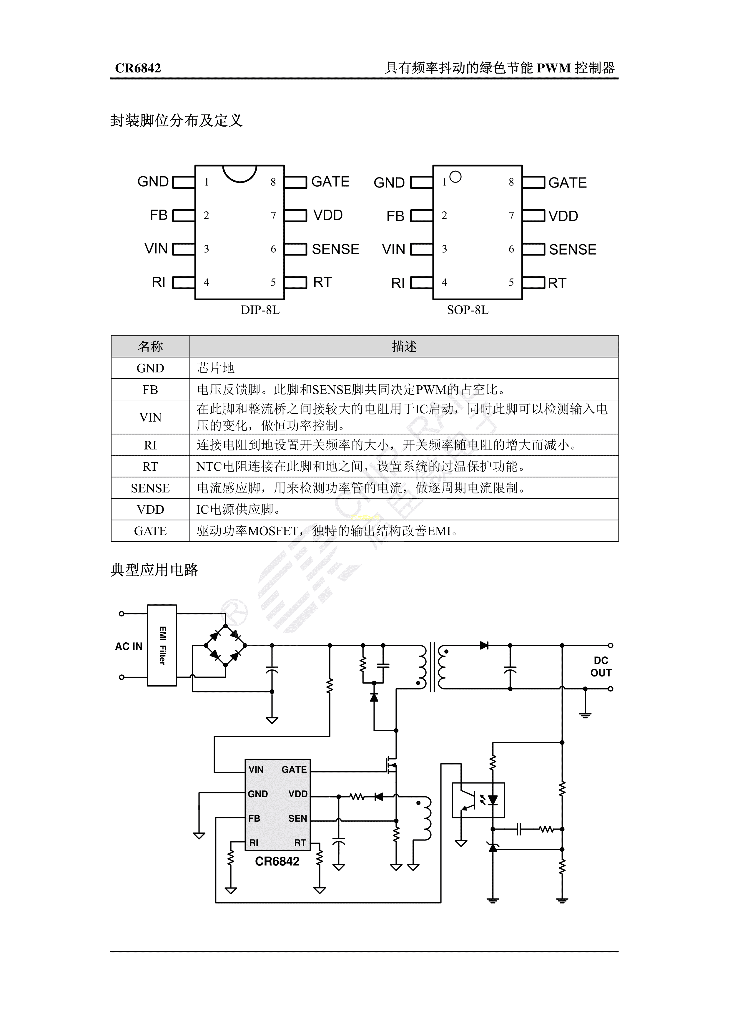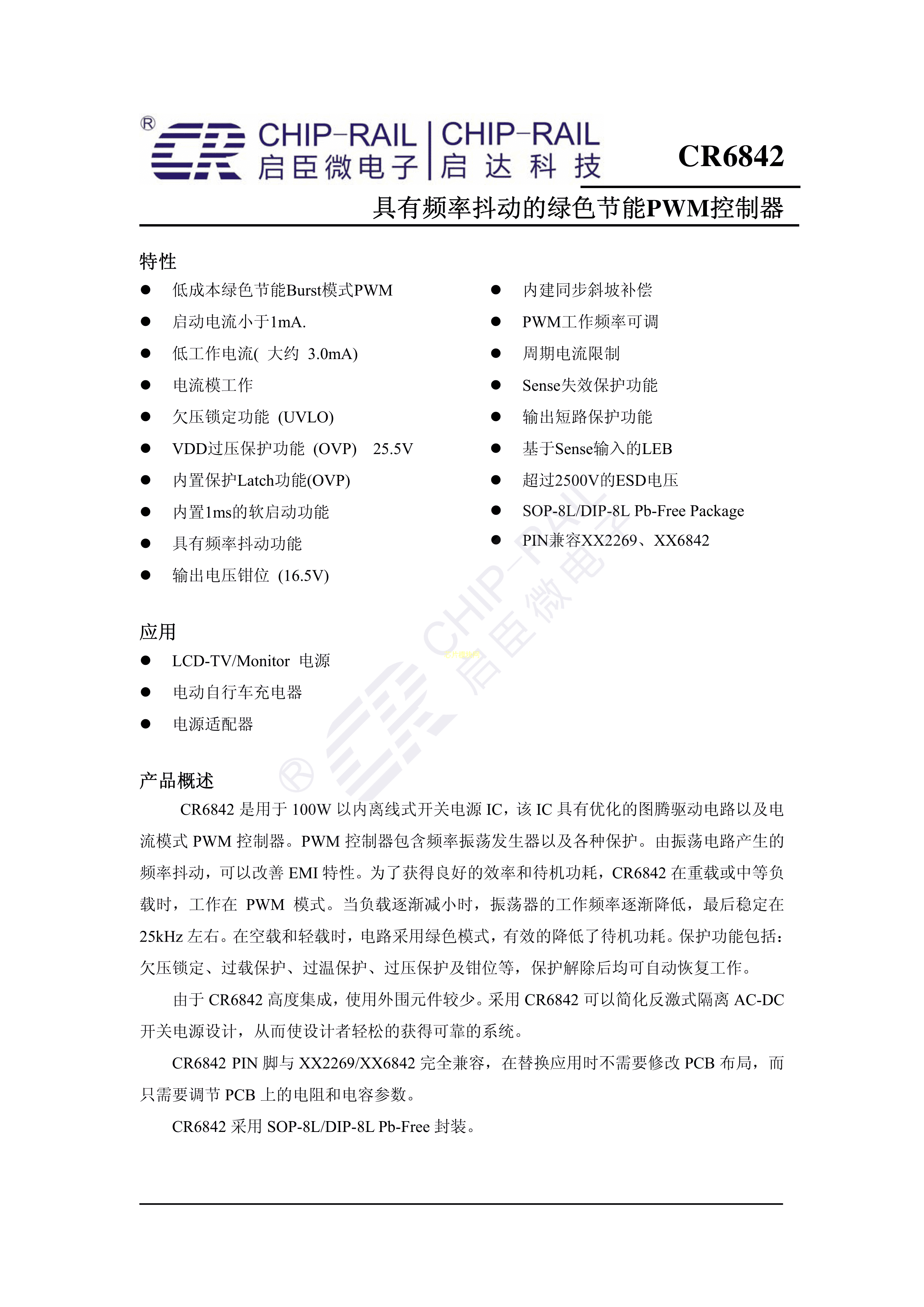 CR6842数据手册SOP-8封装Chip-Rail(启臣微)PDF规格书,中英文下载