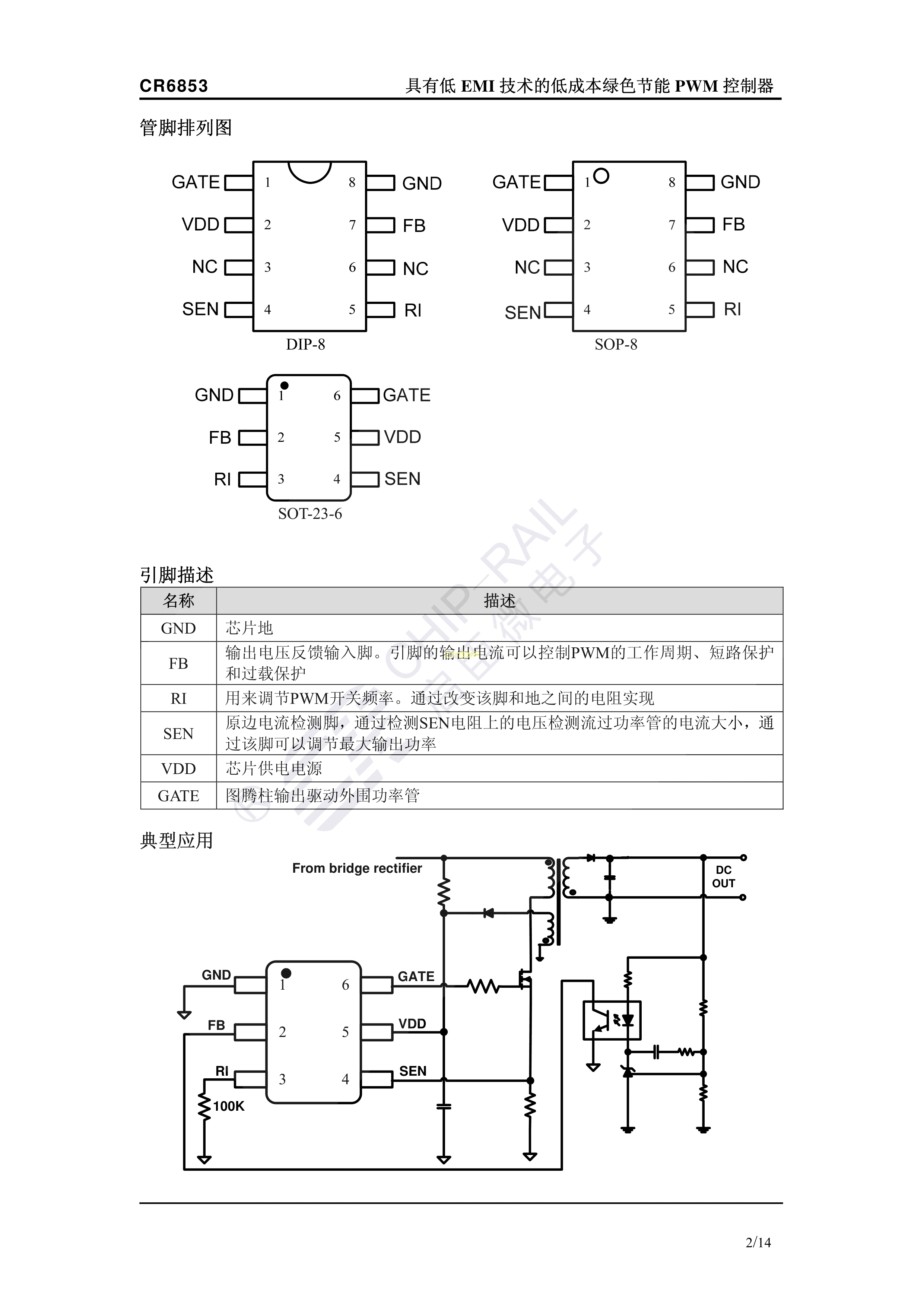 CR6853数据手册DIP-8封装Chip-Rail(启臣微)PDF规格书,中英文下载