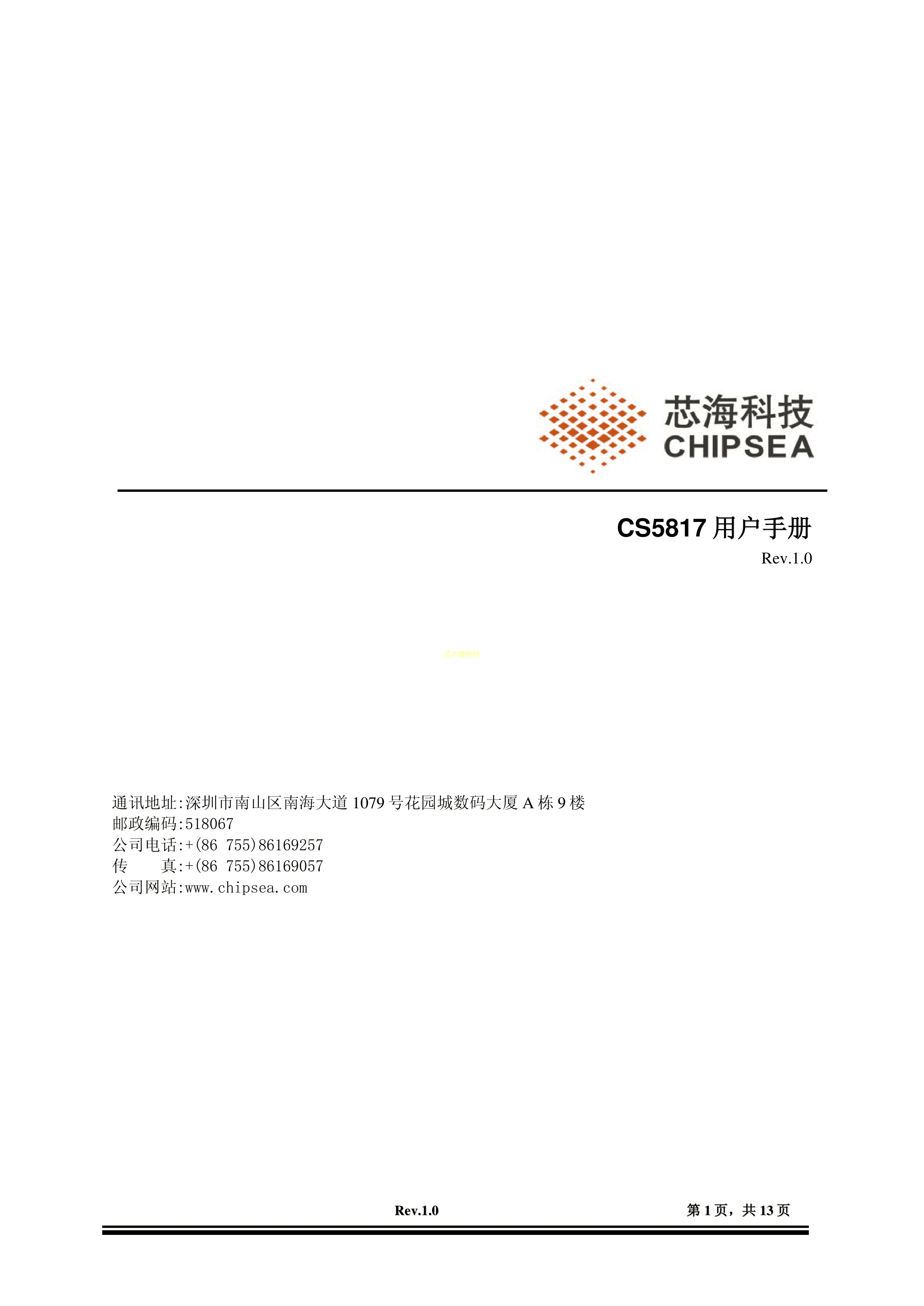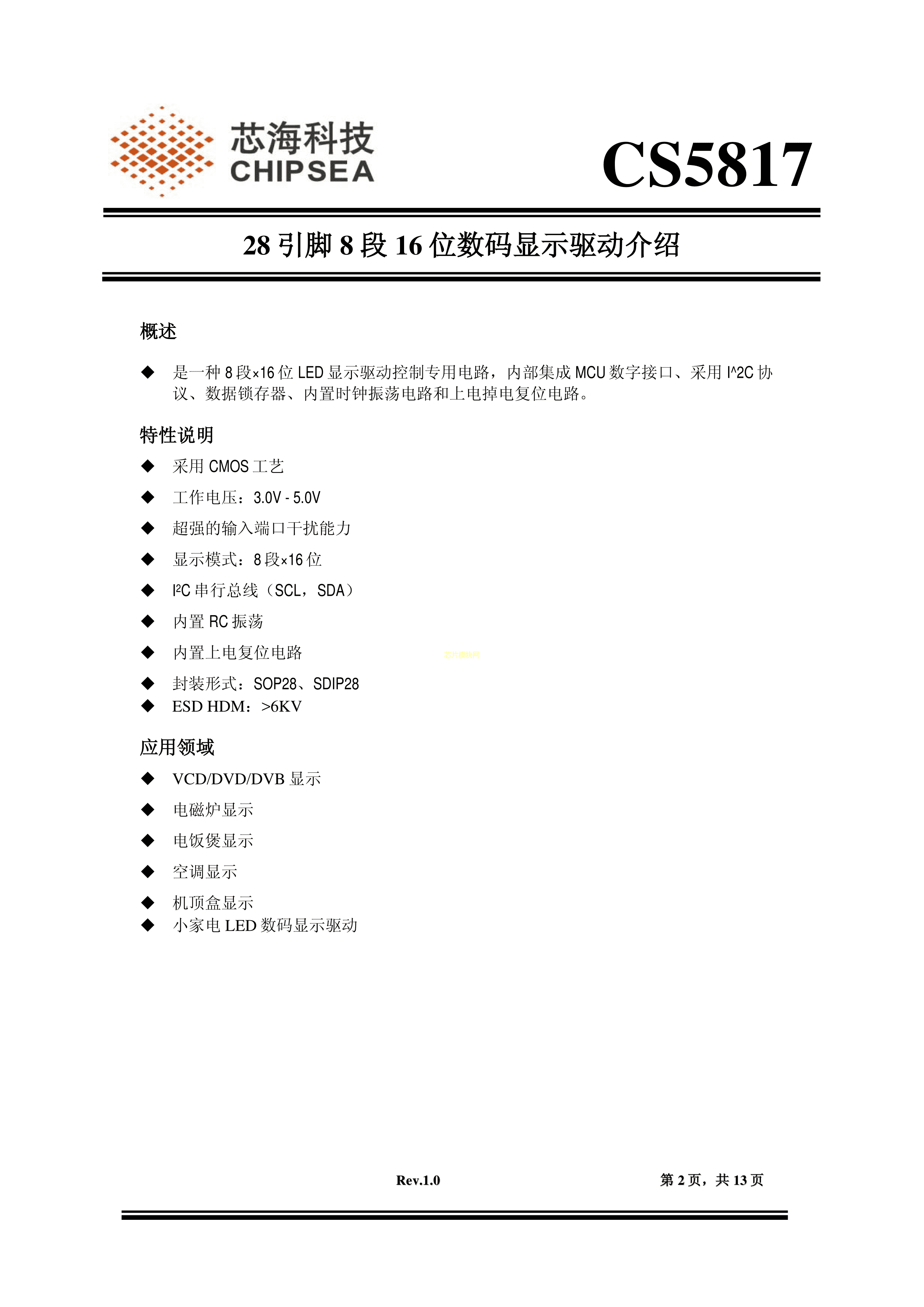 CS5817A数据手册SOP-28_300mil封装CHIPSEA(芯海科技)PDF规格书,中英文下