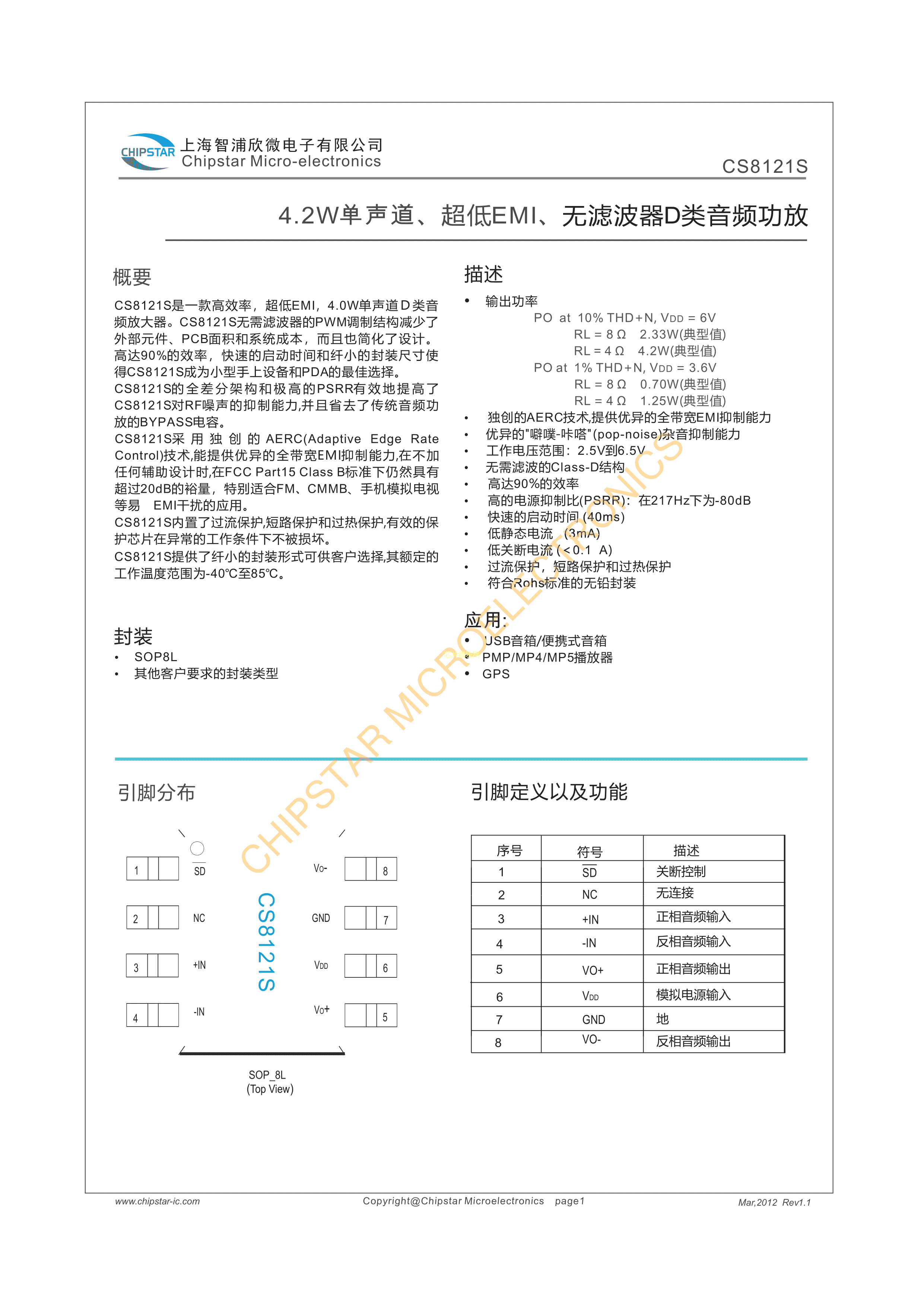 CS8121SPDF规格书,中英文下载