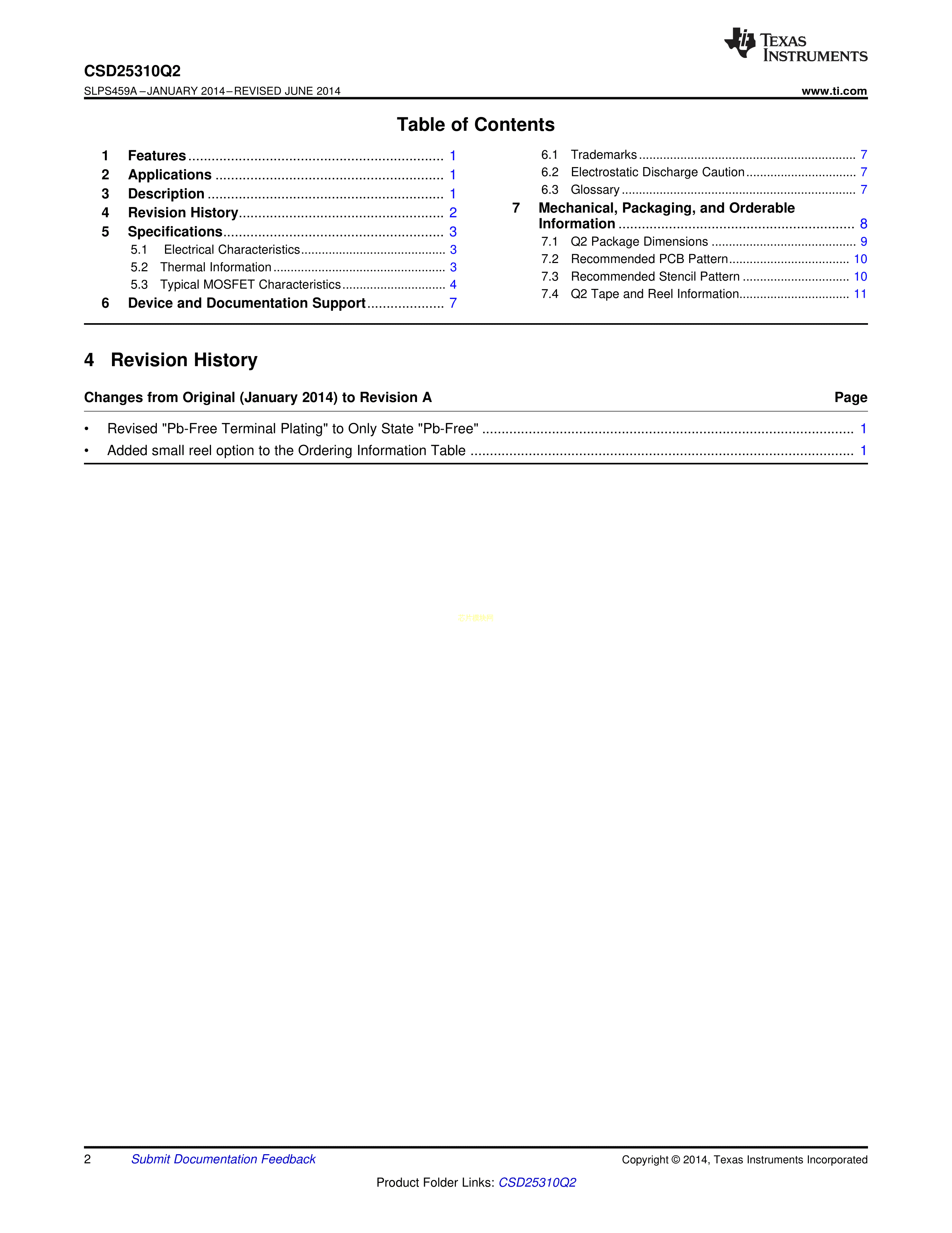 CSD25310Q2数据手册WSON-6封装TI(德州仪器)PDF规格书,中英文下载