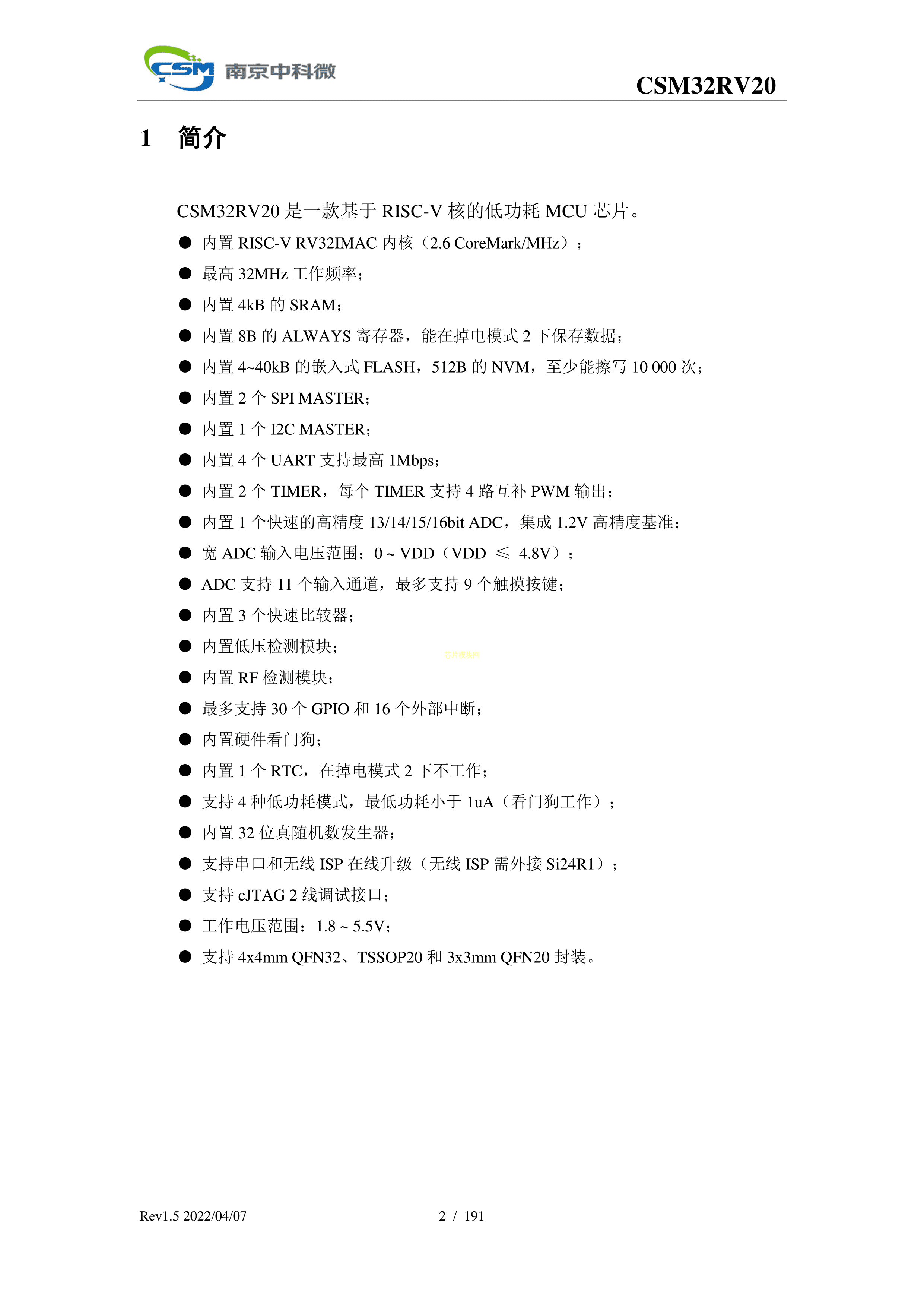 CSM32RV20数据手册TSSOP-20封装南京中科微PDF规格书,中英文下载
