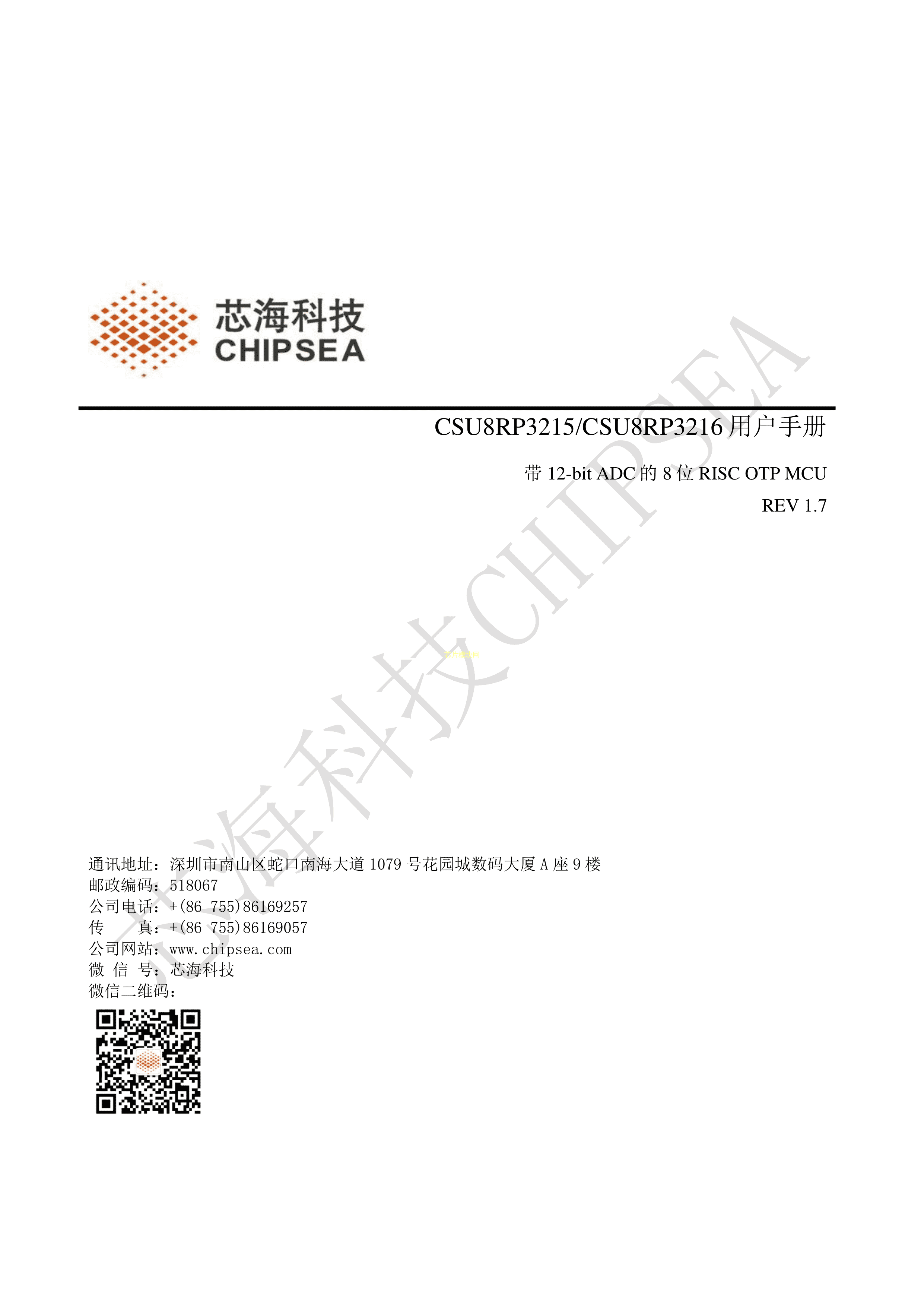 CSU8RP3215-SOP16数据手册SOP-16封装CHIPSEA(芯海科技)PDF规格书,中英