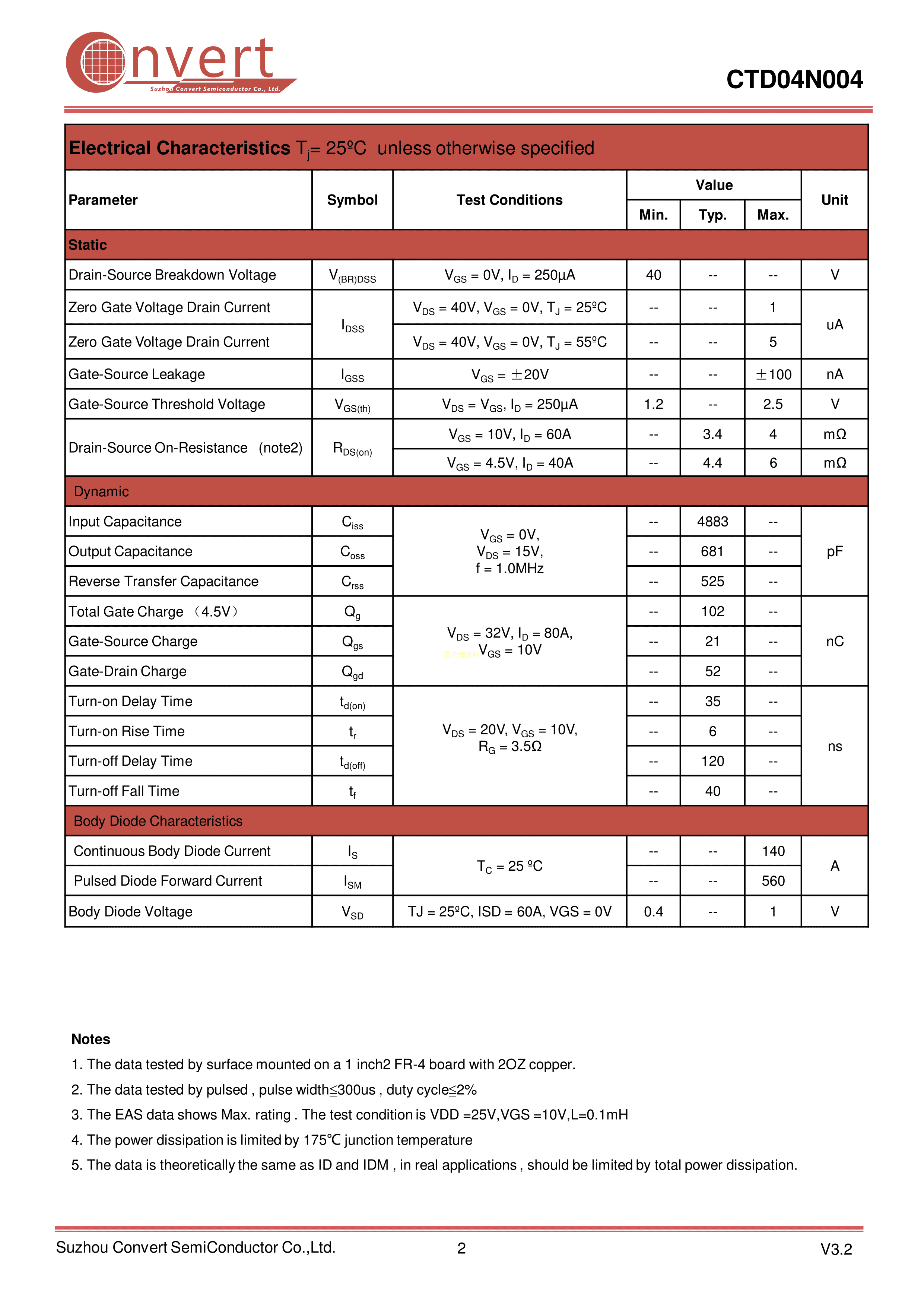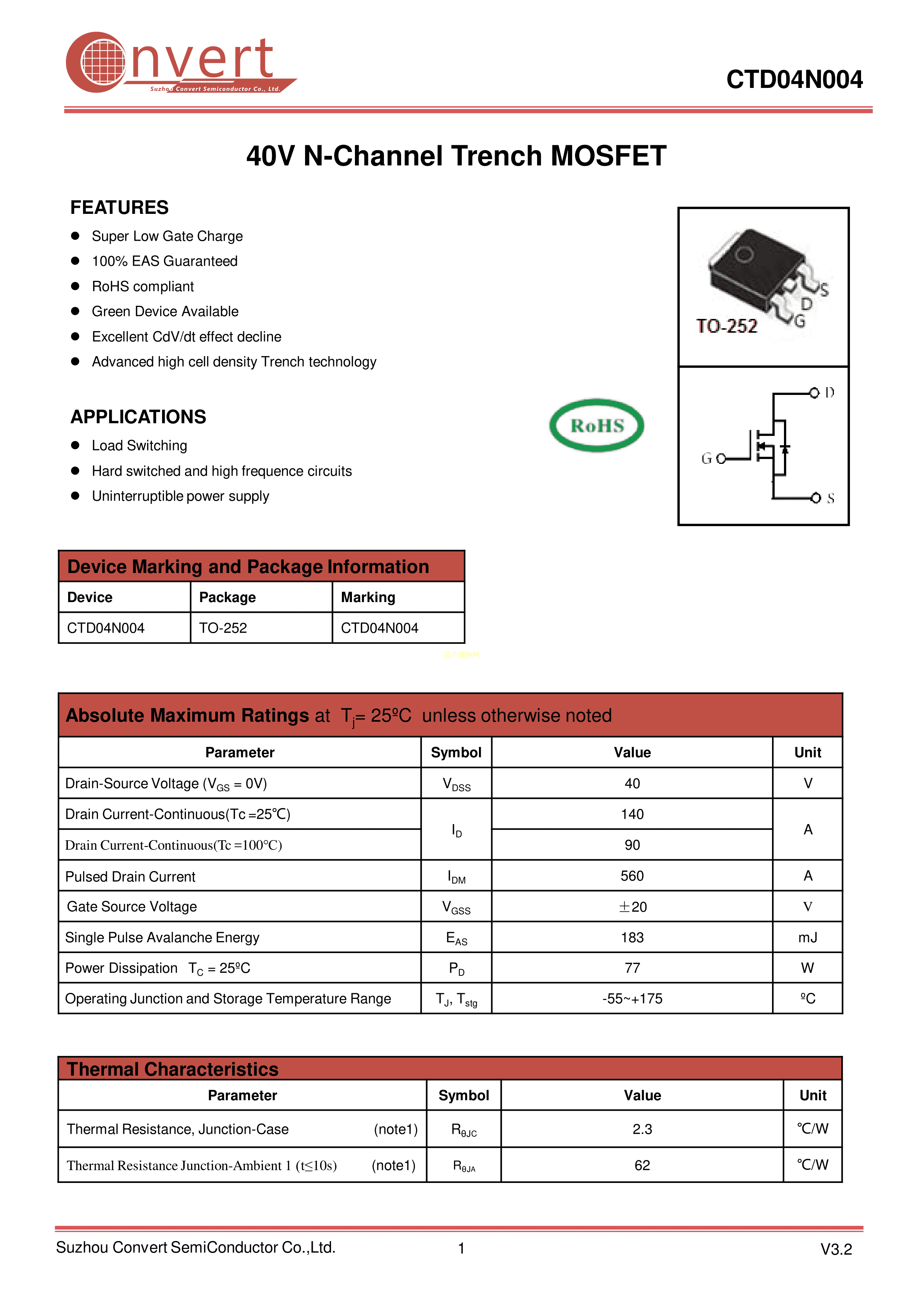 CTD04N004数据手册TO-252封装ConvertSemiconductor(锴威特半导体)P