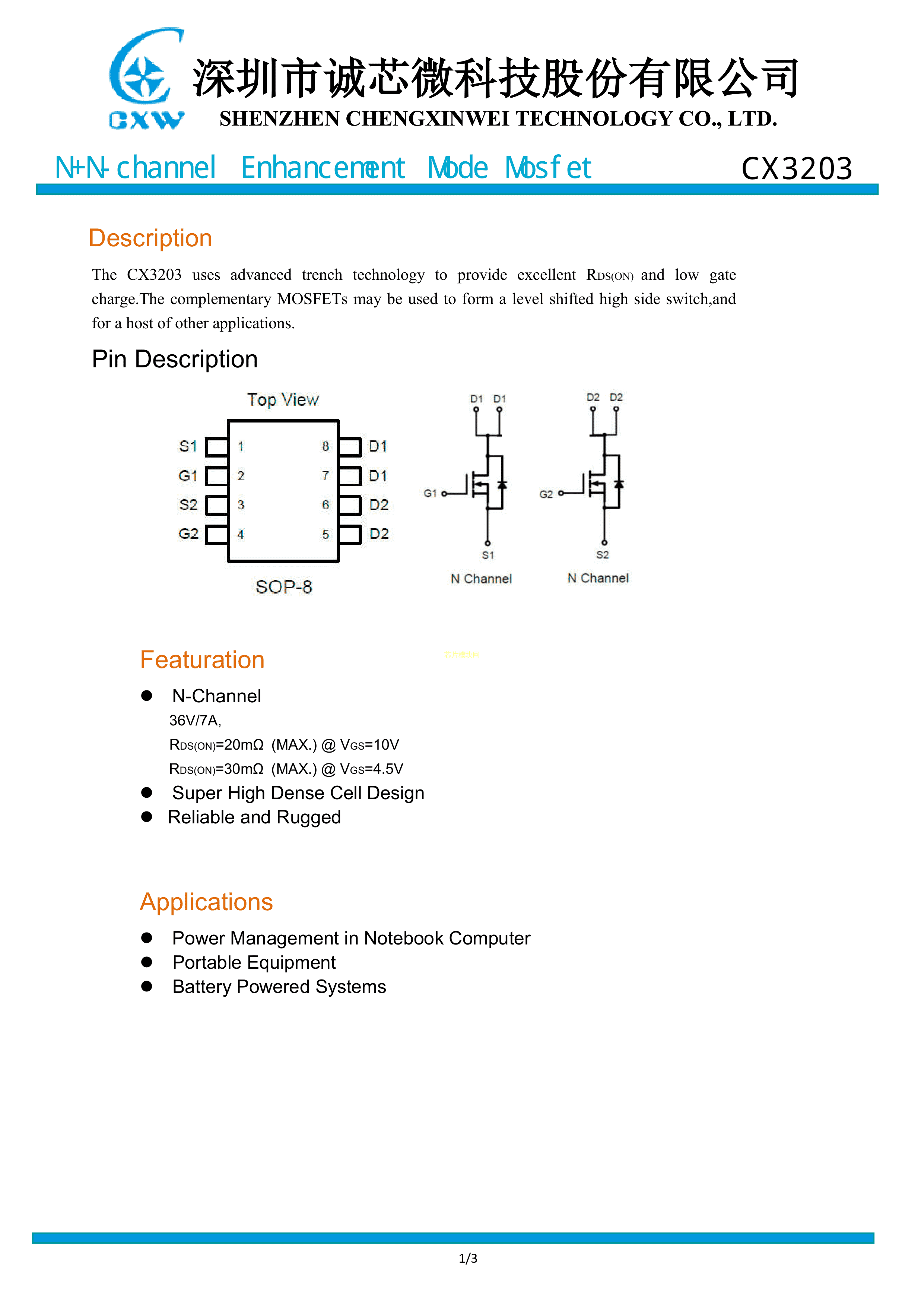 CX3203数据手册SOP-8封装CXW(诚芯微)PDF规格书,中英文下载