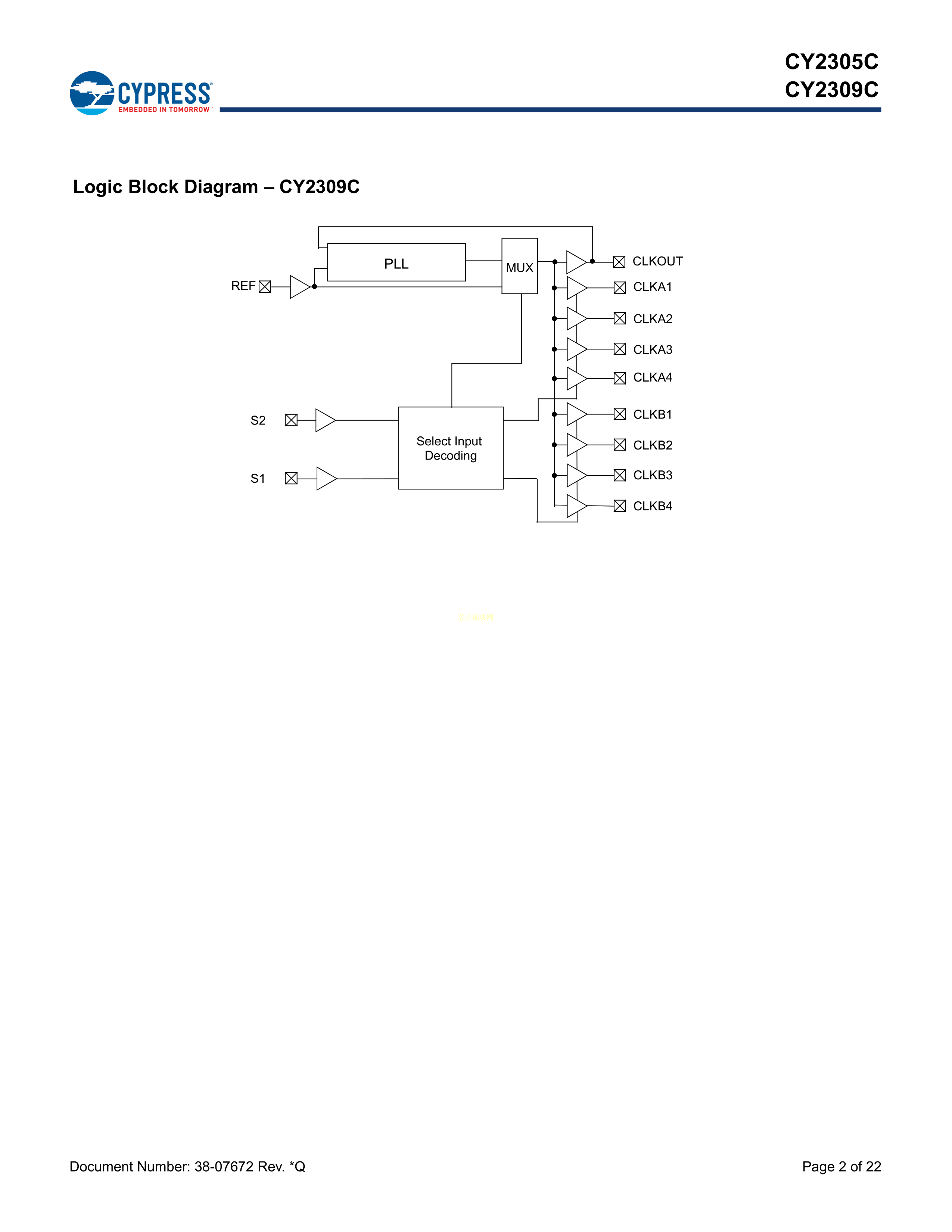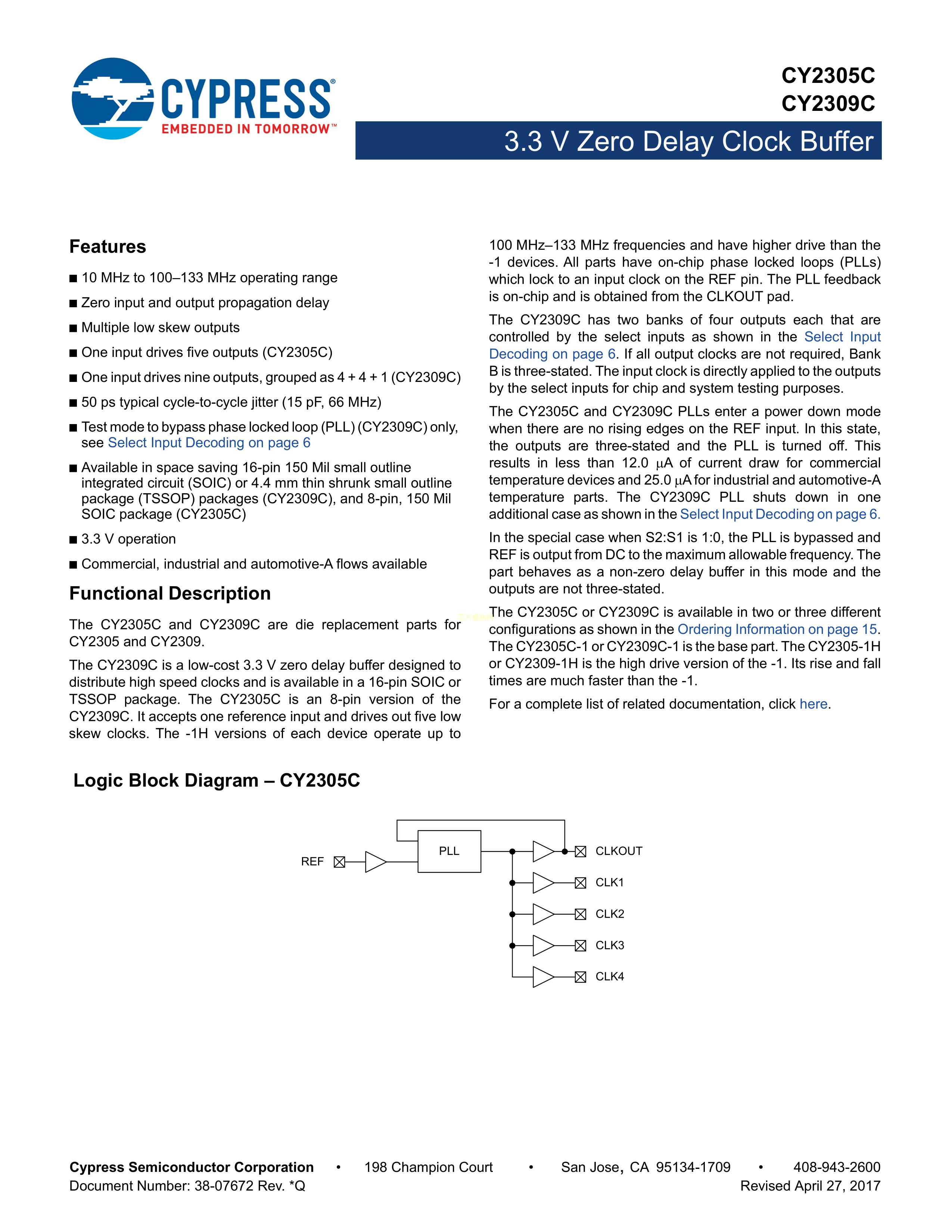 CY2305CSXC-1数据手册SOIC-8封装CYPRESS(赛普拉斯)PDF规格书,中英文下载