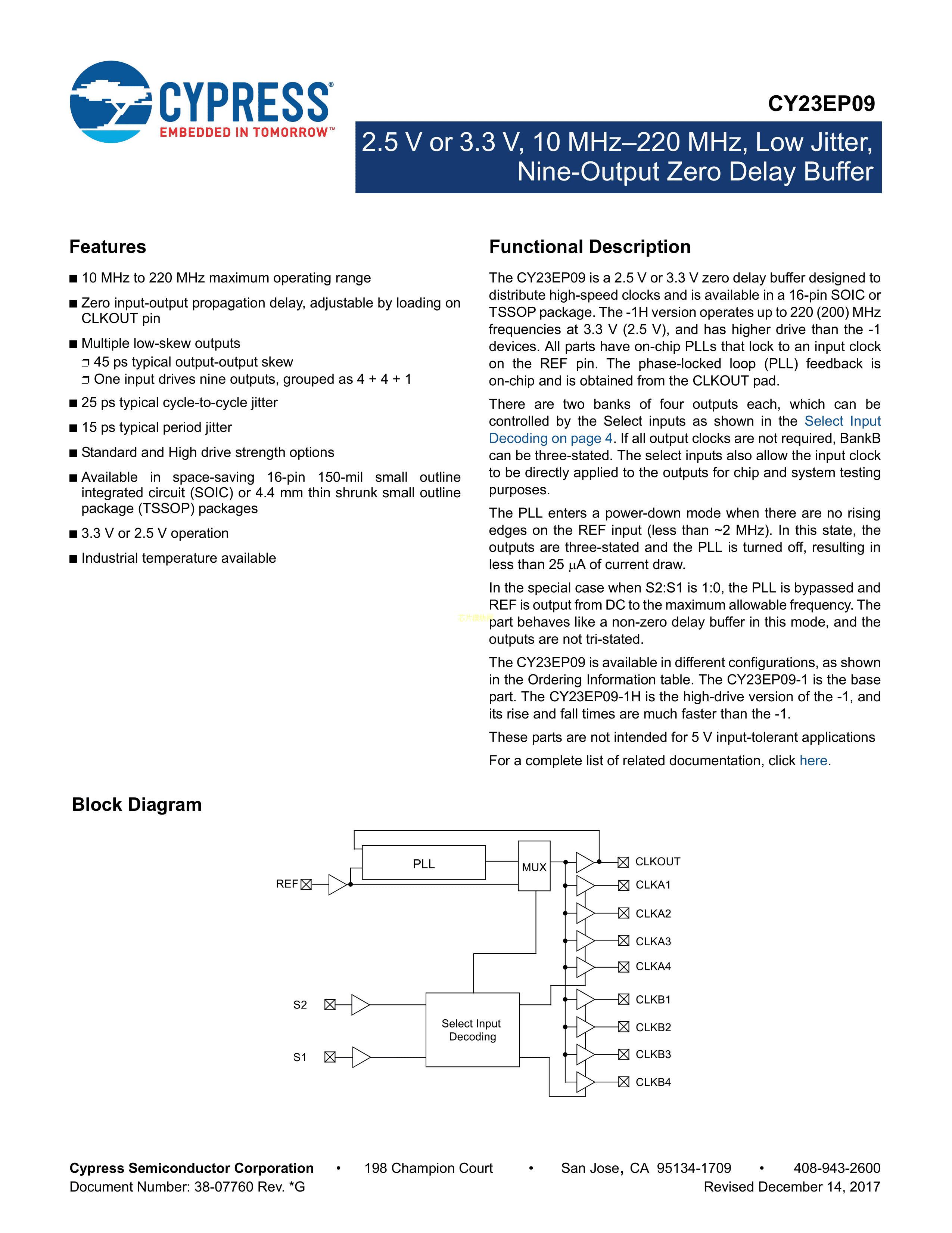 CY23EP09SXI-1HT数据手册SOIC-16封装CYPRESS(赛普拉斯)PDF规格书,中英文下载