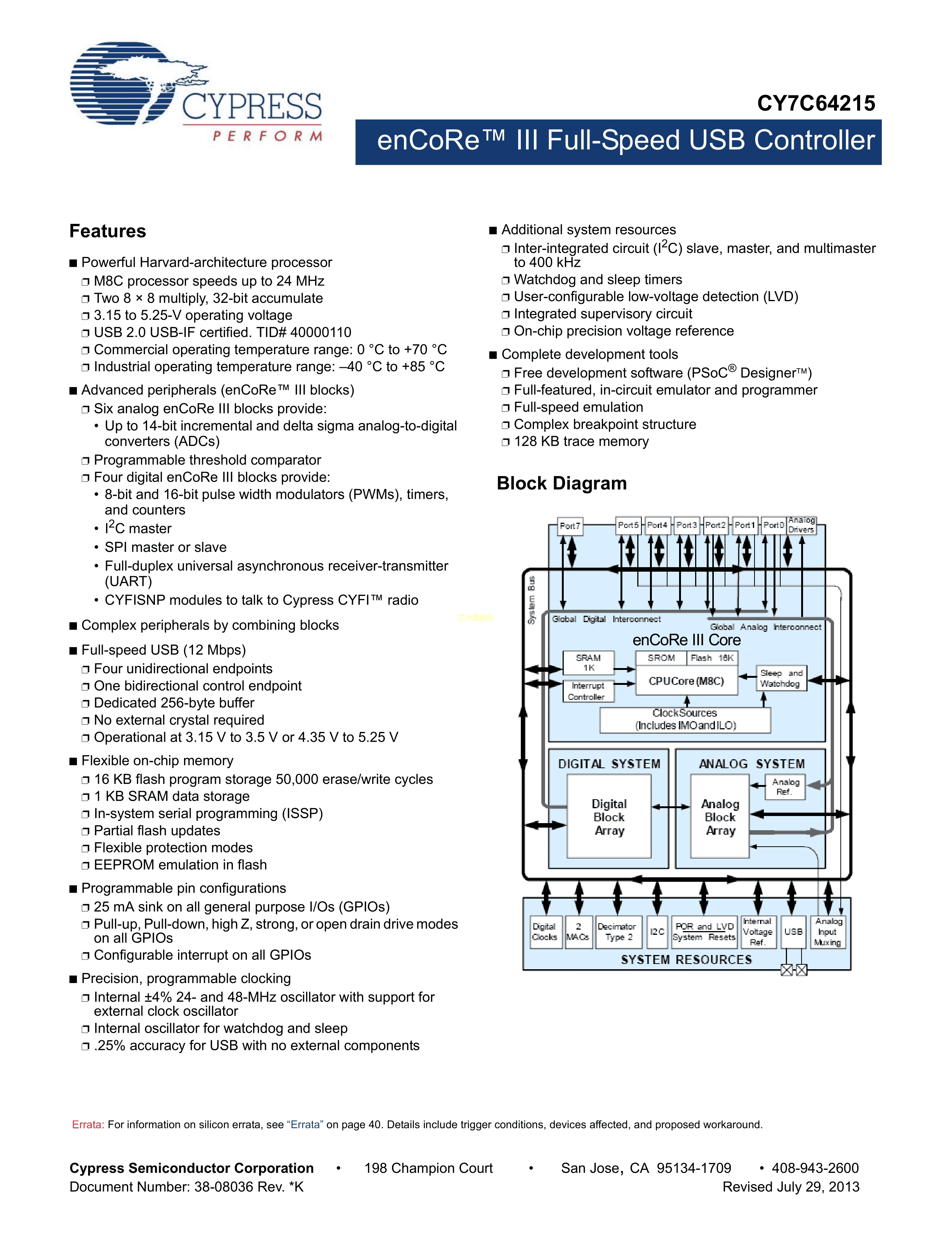CY7C64215-28PVXC数据手册SSOP-28_208mil封装CYPRESS(赛普拉斯)P