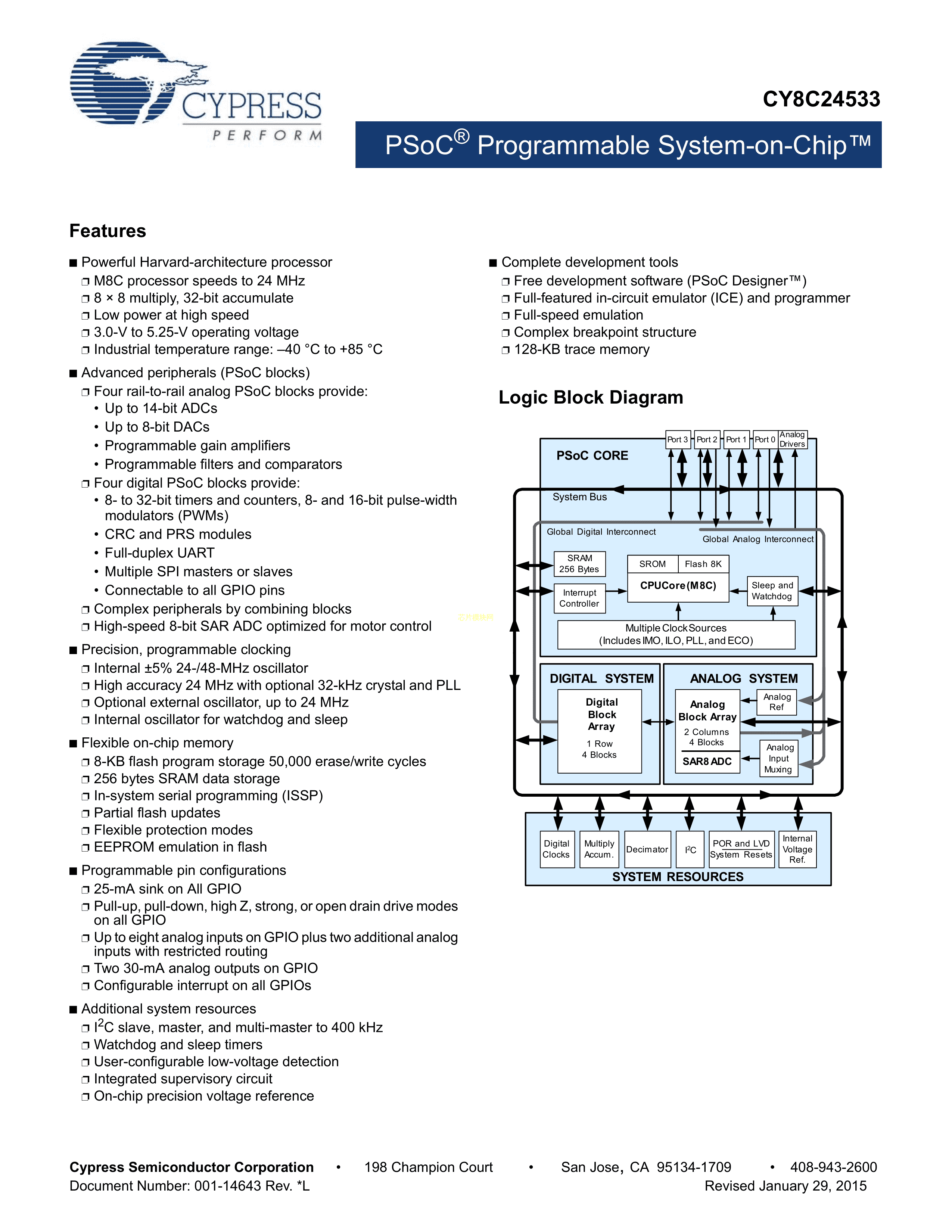 CY8C24533-24PVXIT数据手册SSOP-28封装SPANSION(飞索)PDF规格书,中