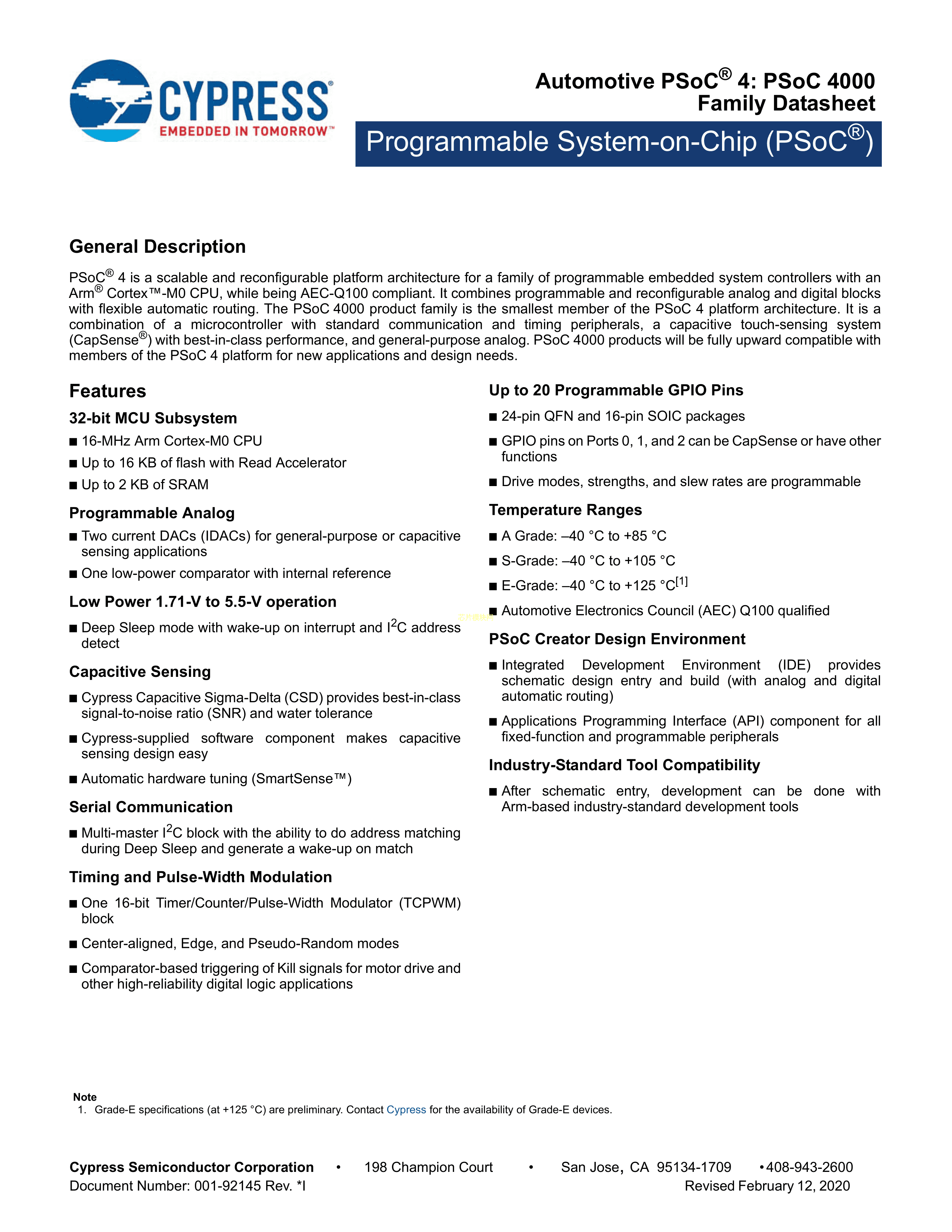 CY8C4014LQS-422ZT数据手册-封装SPANSION(飞索)PDF规格书,中英文下载