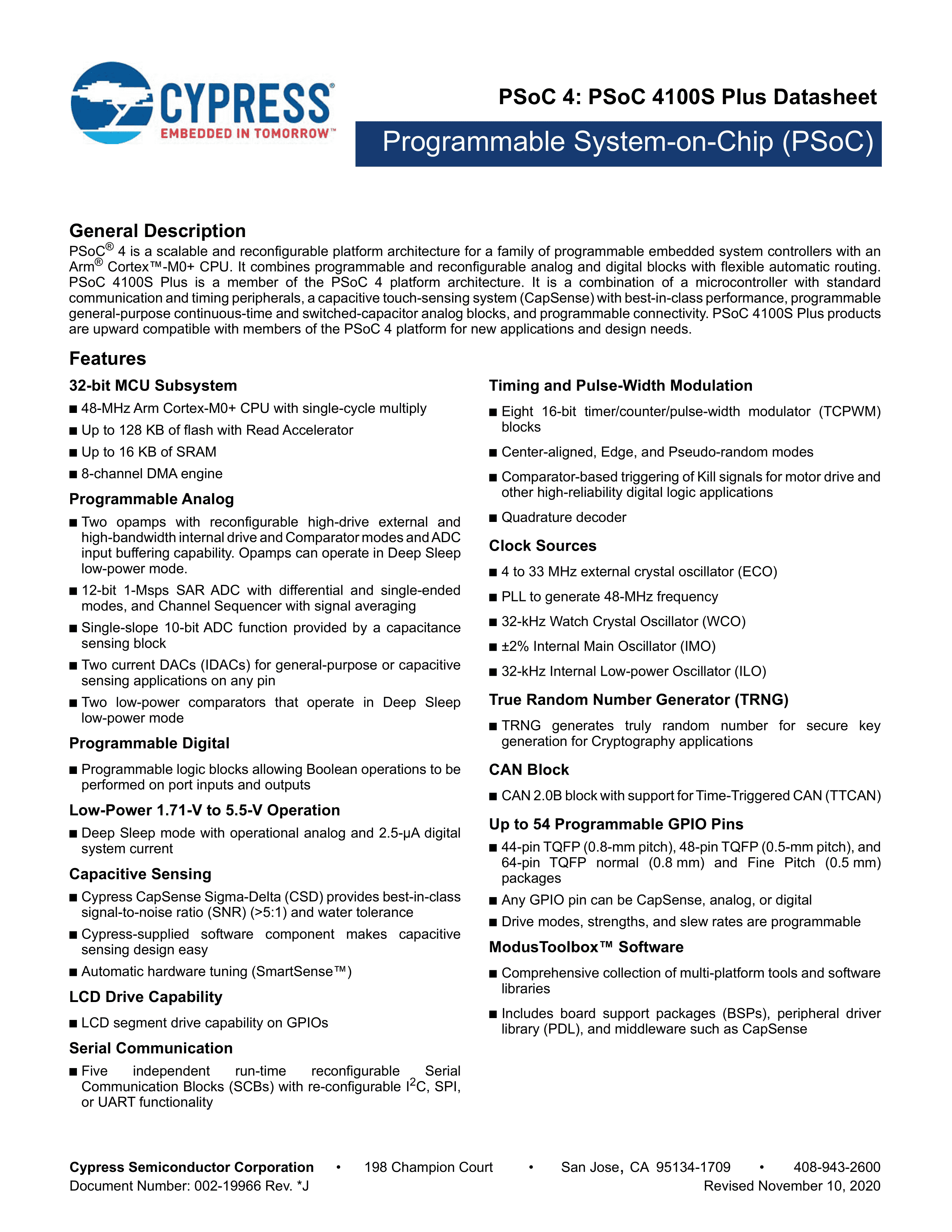 CY8C4127AXI-S453数据手册TQFP-44(10x10)封装SPANSION(飞索)PD