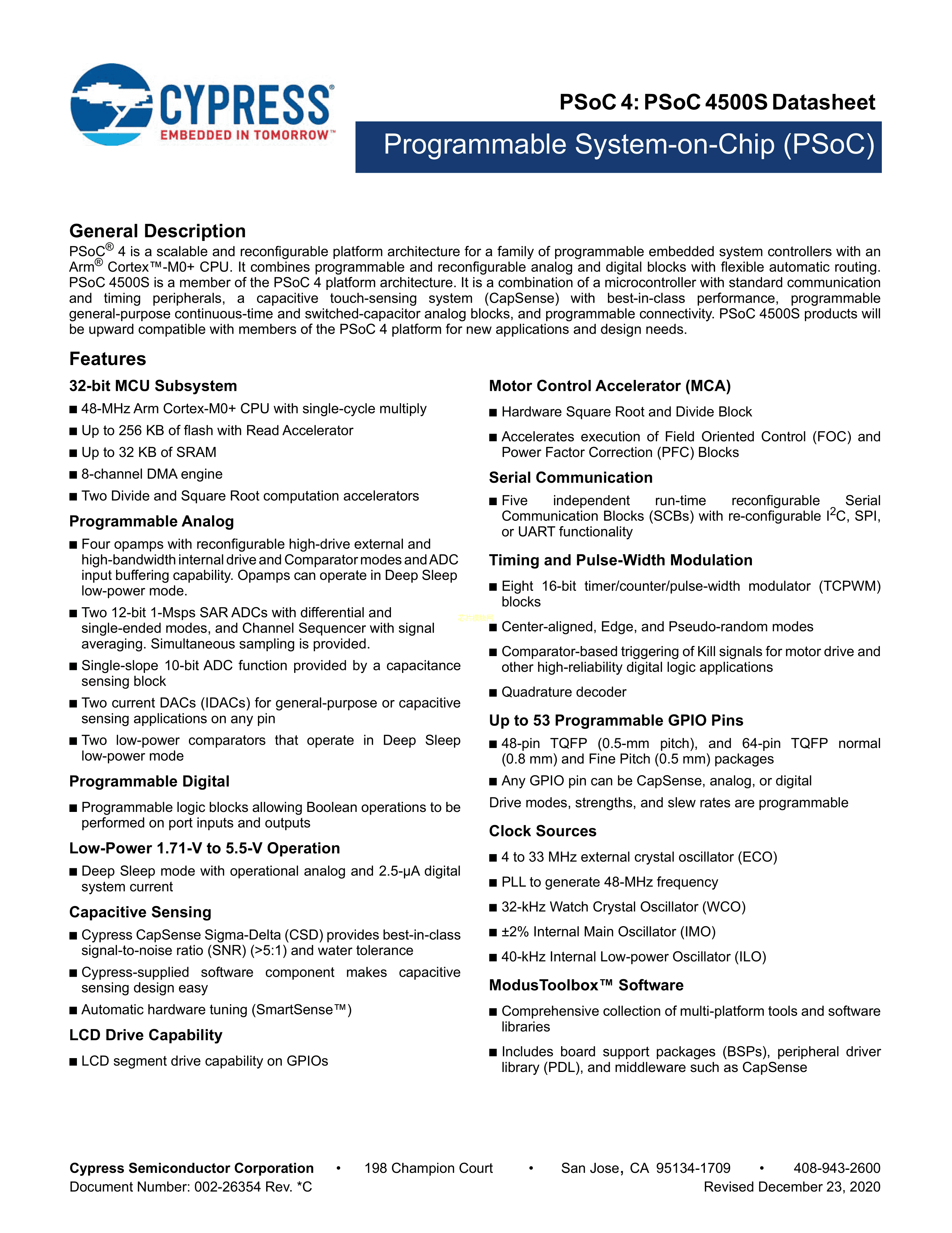 CY8C4546AZI-S473数据手册TQFP-48(7x7)封装SPANSION(飞索)PDF规