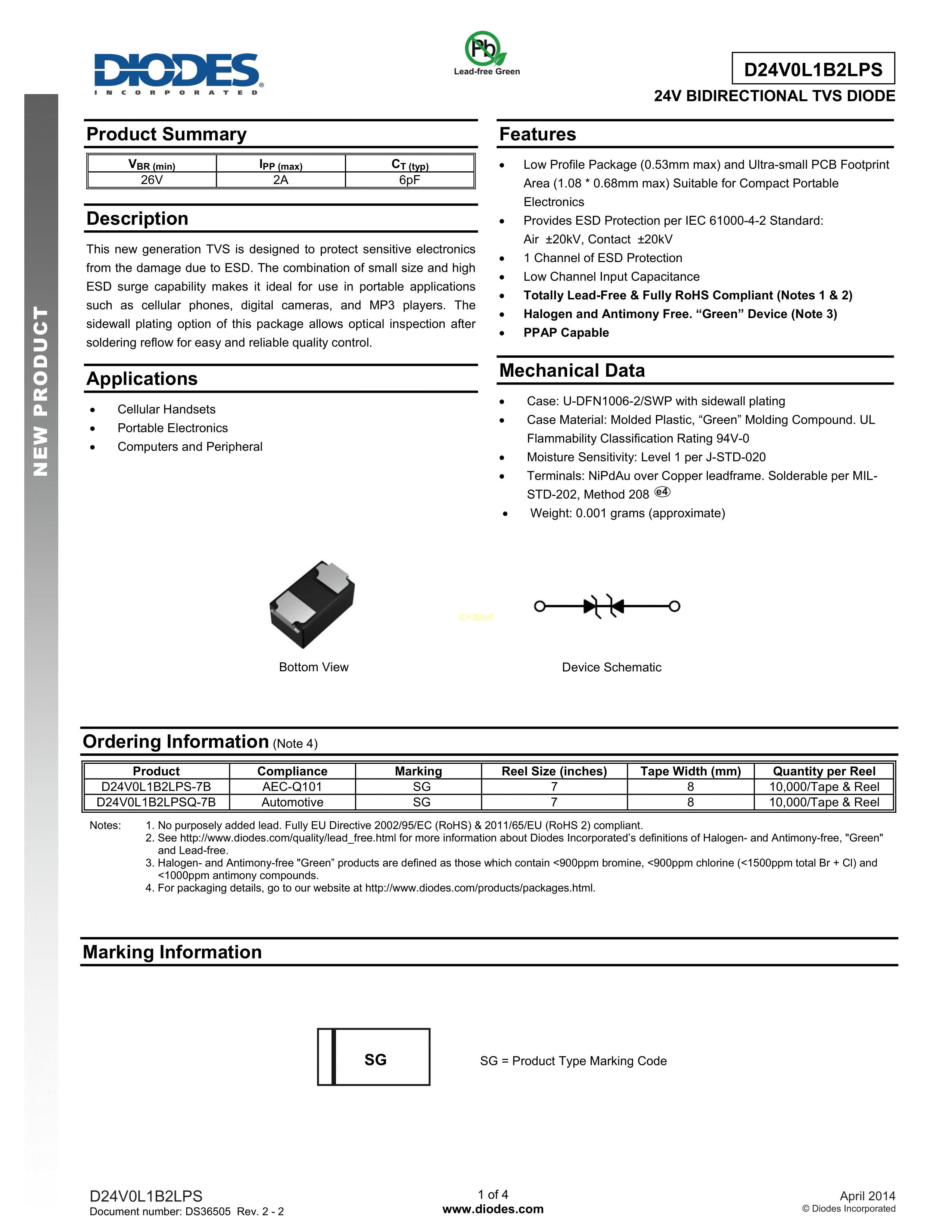 D24V0L1B2LPS-7B数据手册X1-DFN1006-2封装DIODES(美台)PDF规格书,中英文下载