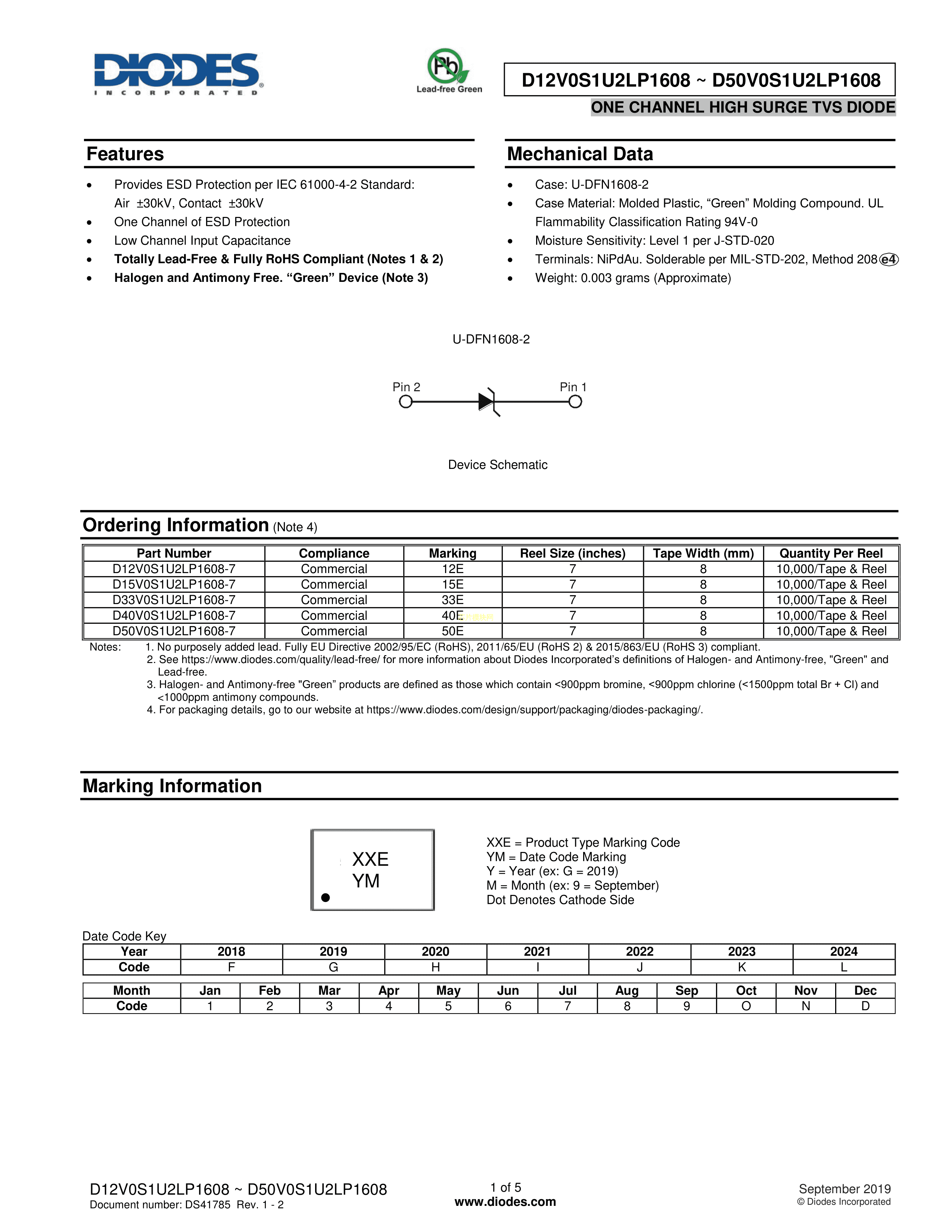 D33V0S1U2LP1608-7数据手册U-DFN1608-2封装DIODES(美台)PDF规格书,中英文下载