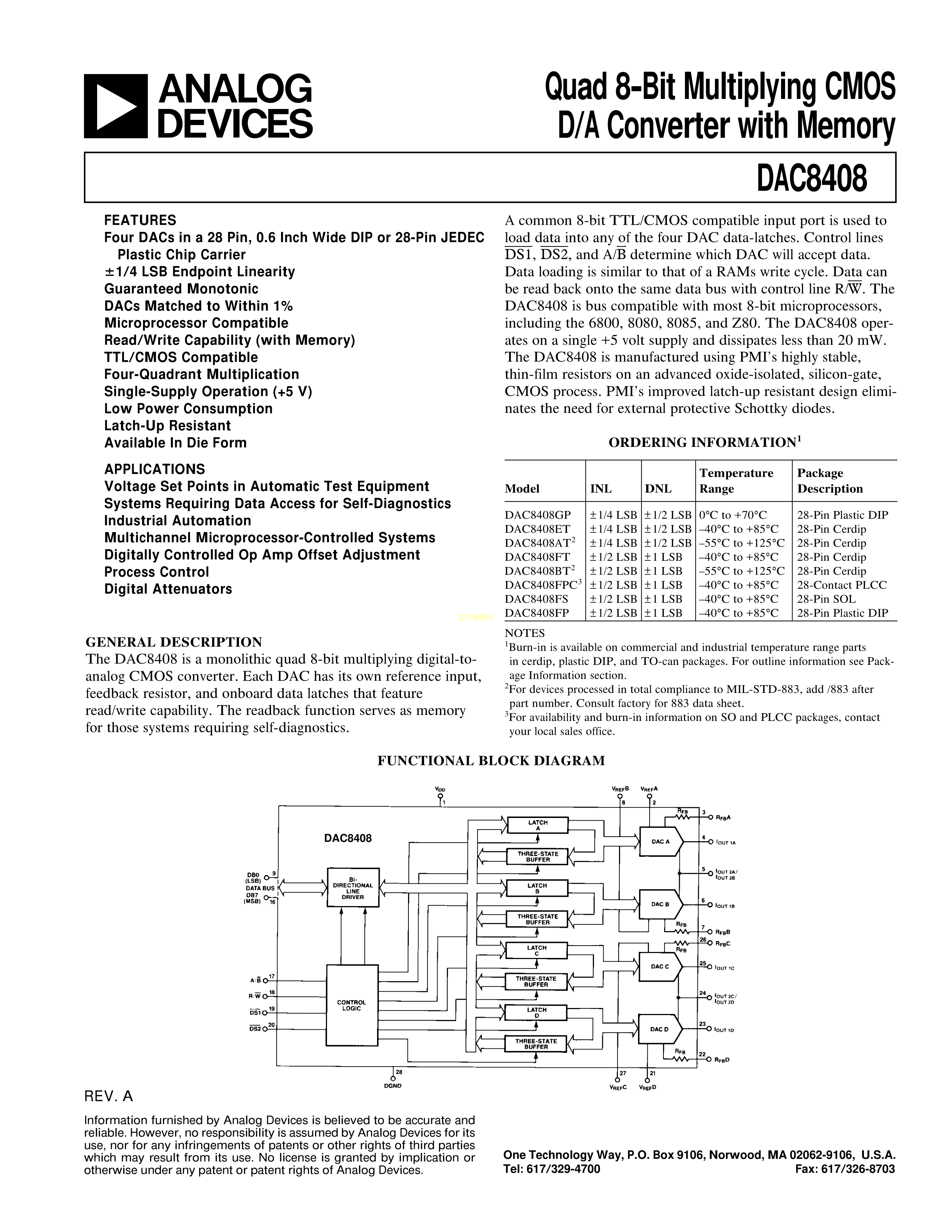 DAC8408FSZ数据手册SO-28L封装ADI(亚德诺)-LINEARPDF规格书,中英文下载