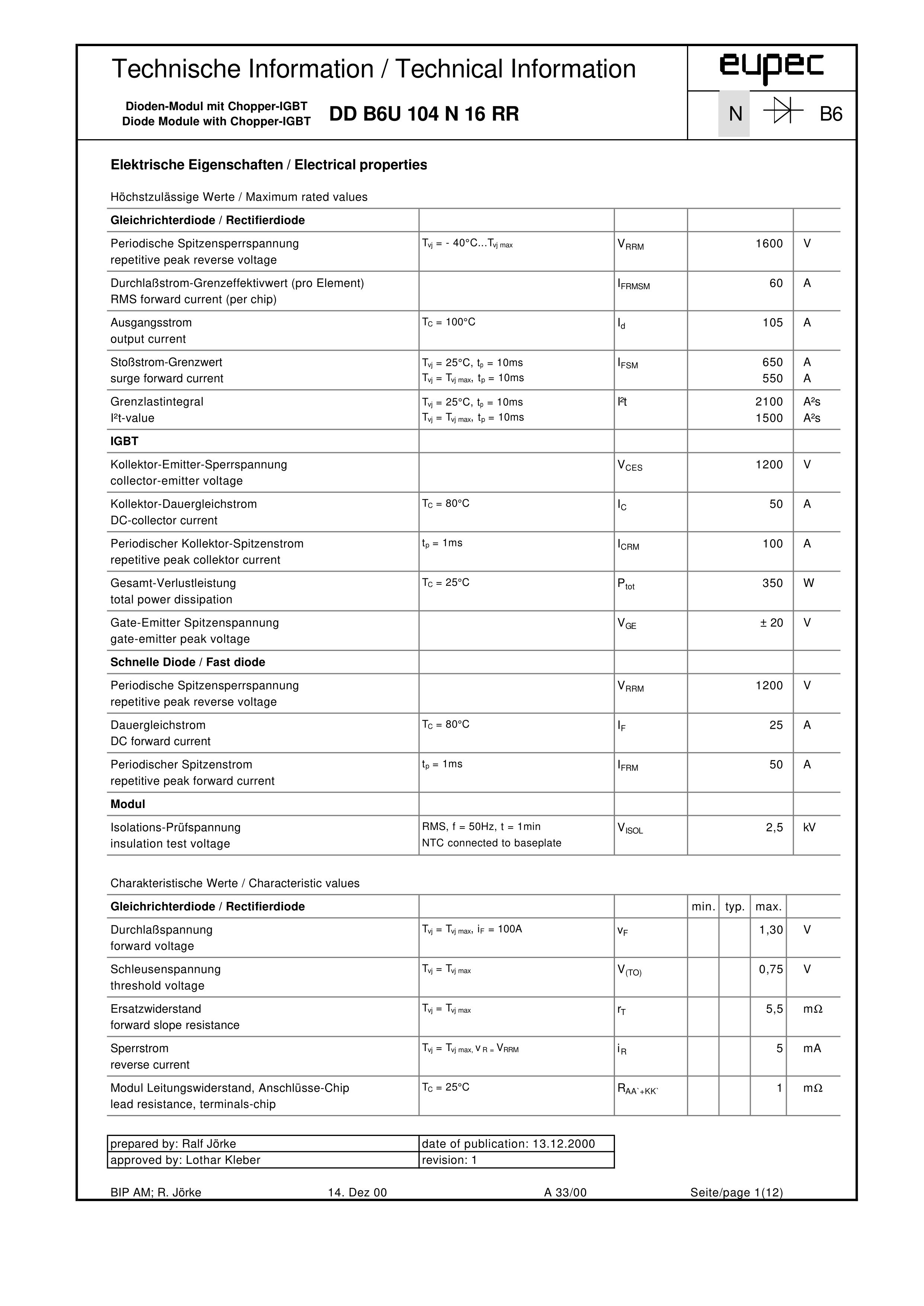 DDB6U104N16RR数据手册AG-ECONO2-7封装Infineon(英飞凌)PDF规格书,