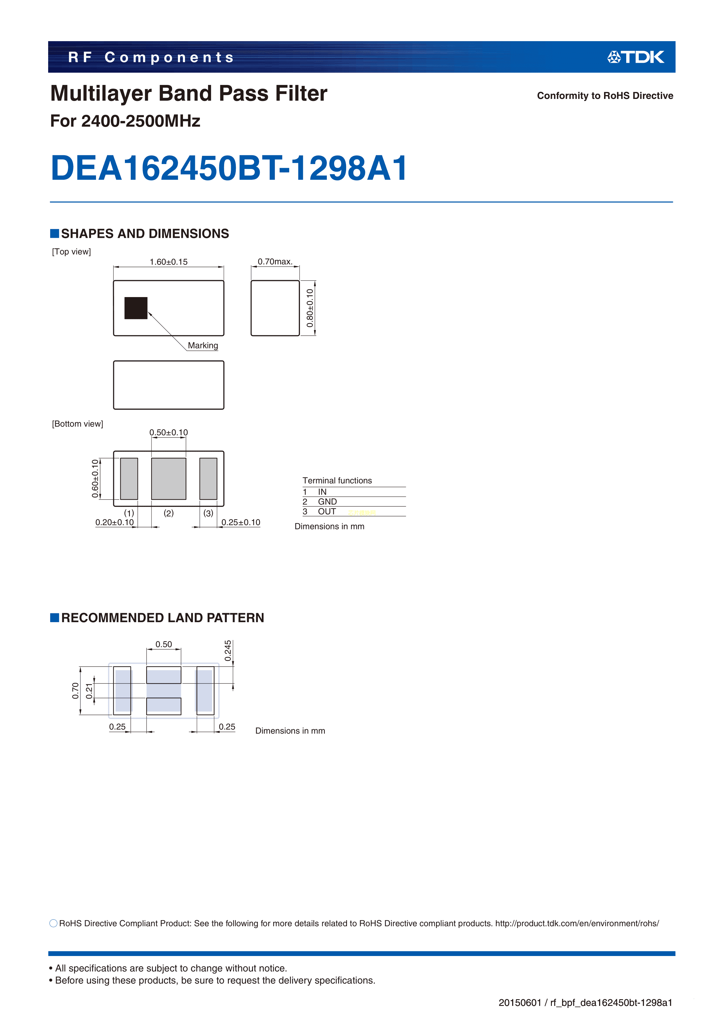 DEA162450BT-1298A1数据手册0603封装TDKPDF规格书,中英文下载