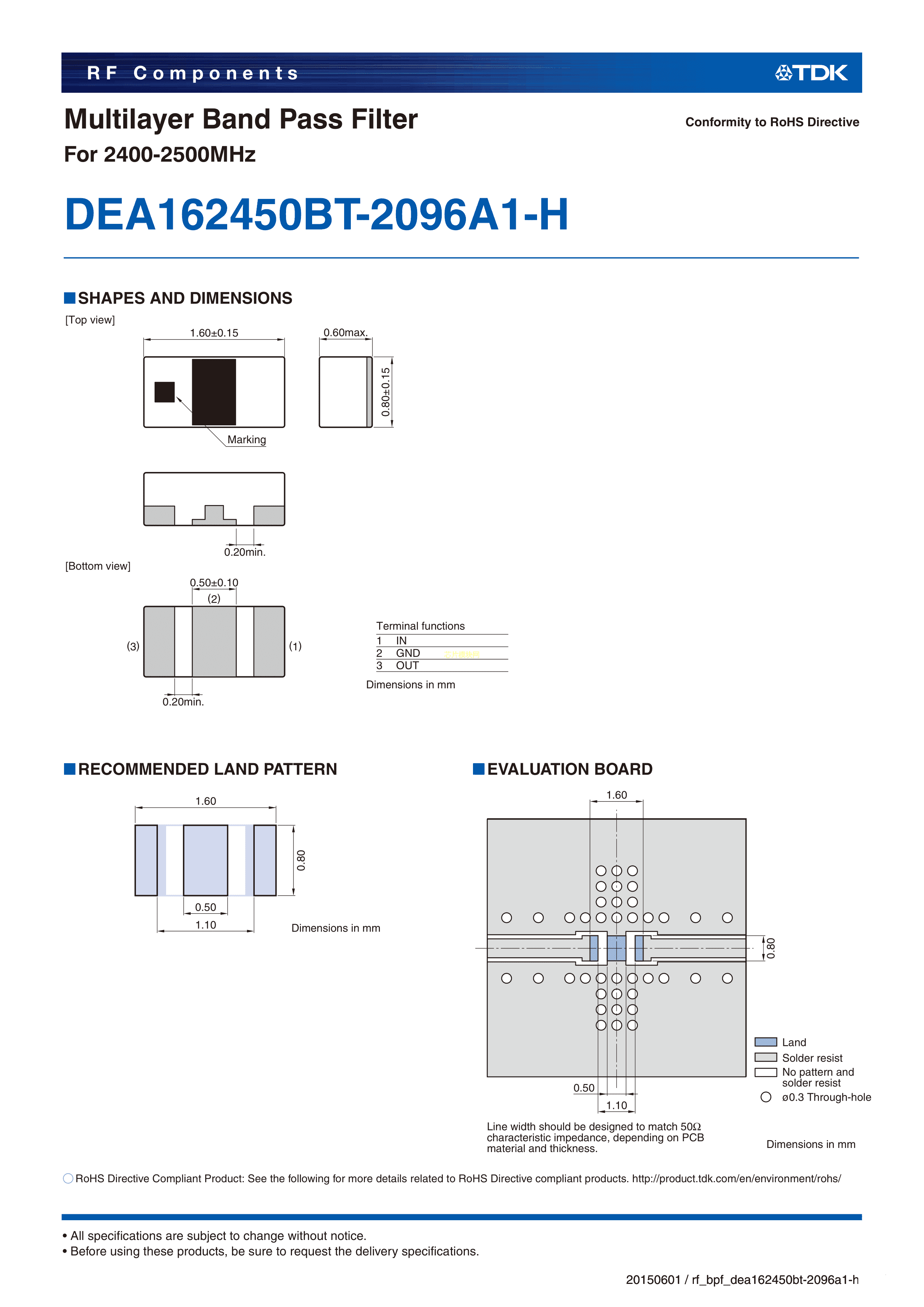DEA162450BT-2096A1-H数据手册0603封装TDKPDF规格书,中英文下载