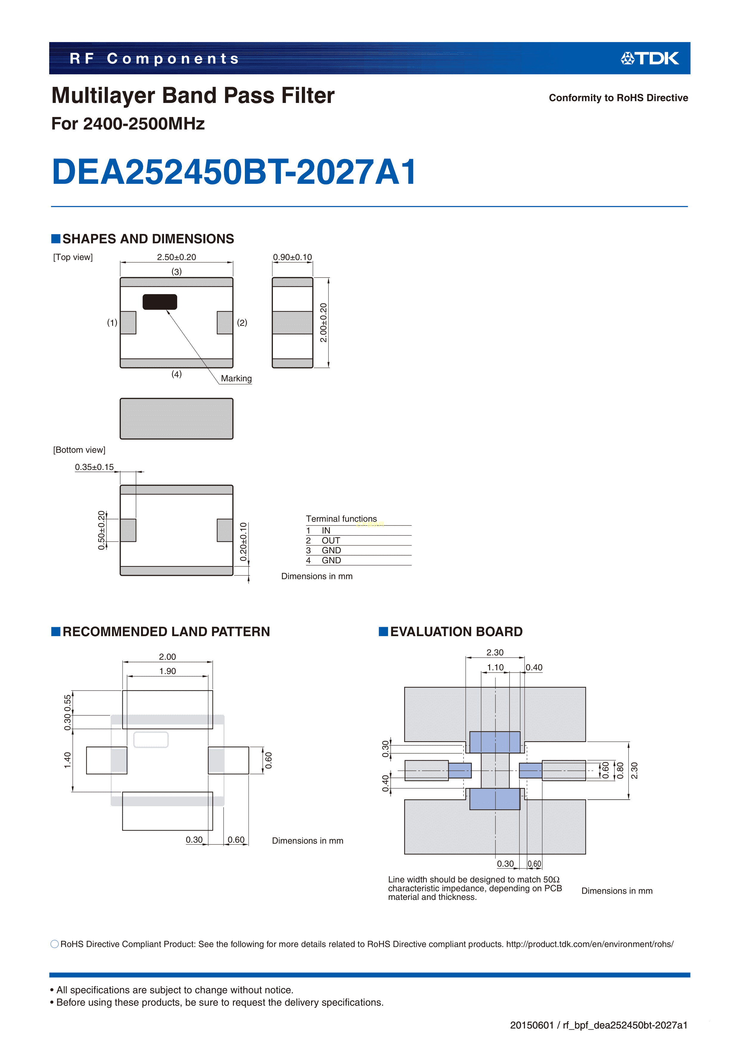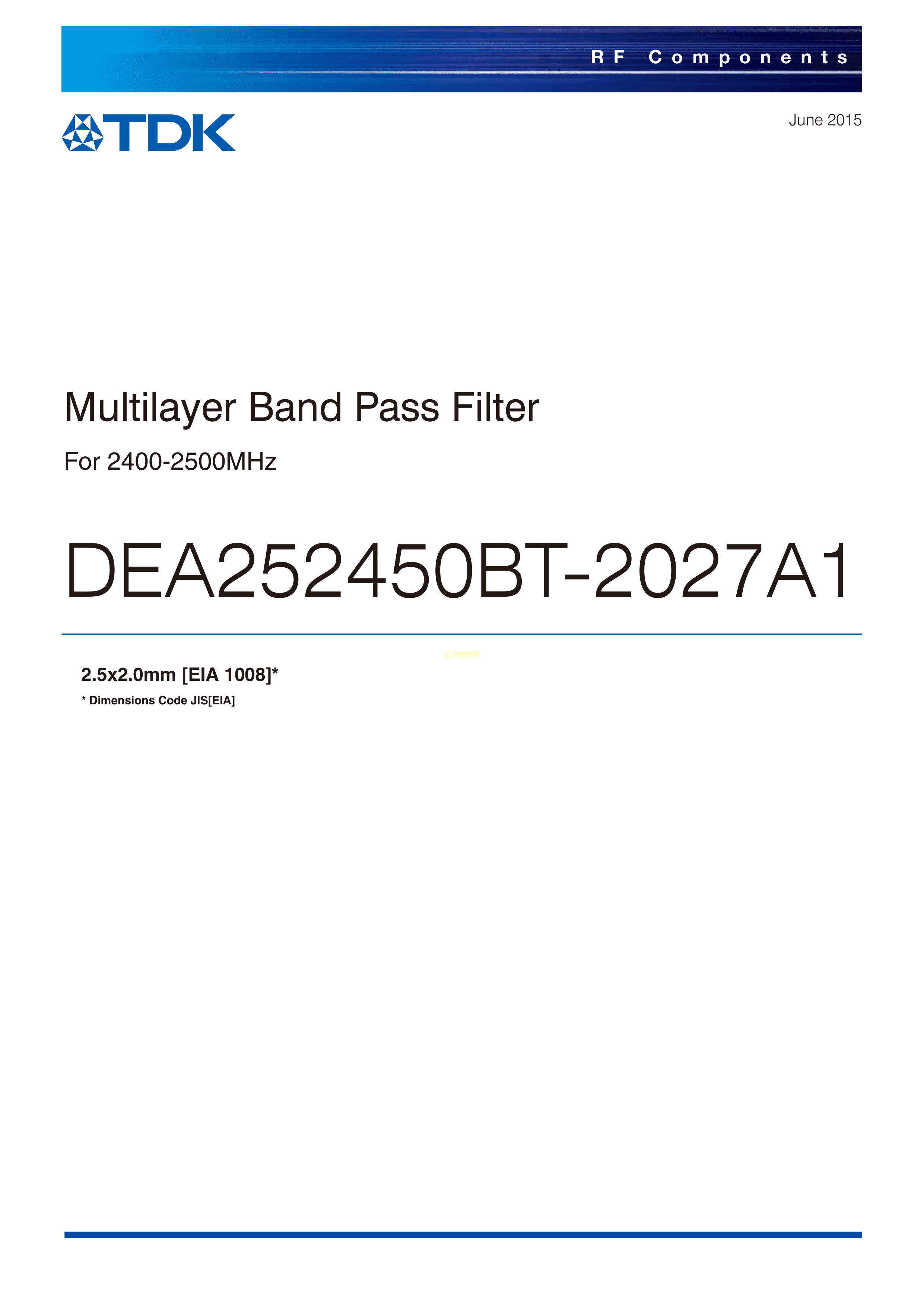 DEA252450BT-2027A1数据手册1008封装TDKPDF规格书,中英文下载