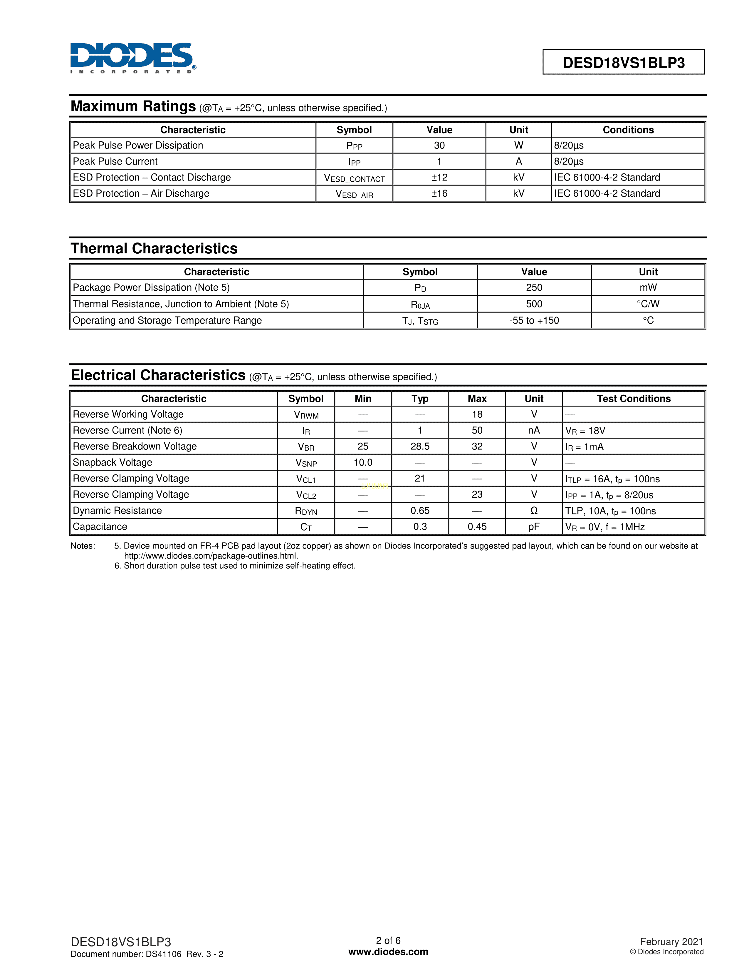 DESD18VS1BLP3-7数据手册X2-DFN0603-2封装DIODES(美台)PDF规格书,中英文下载