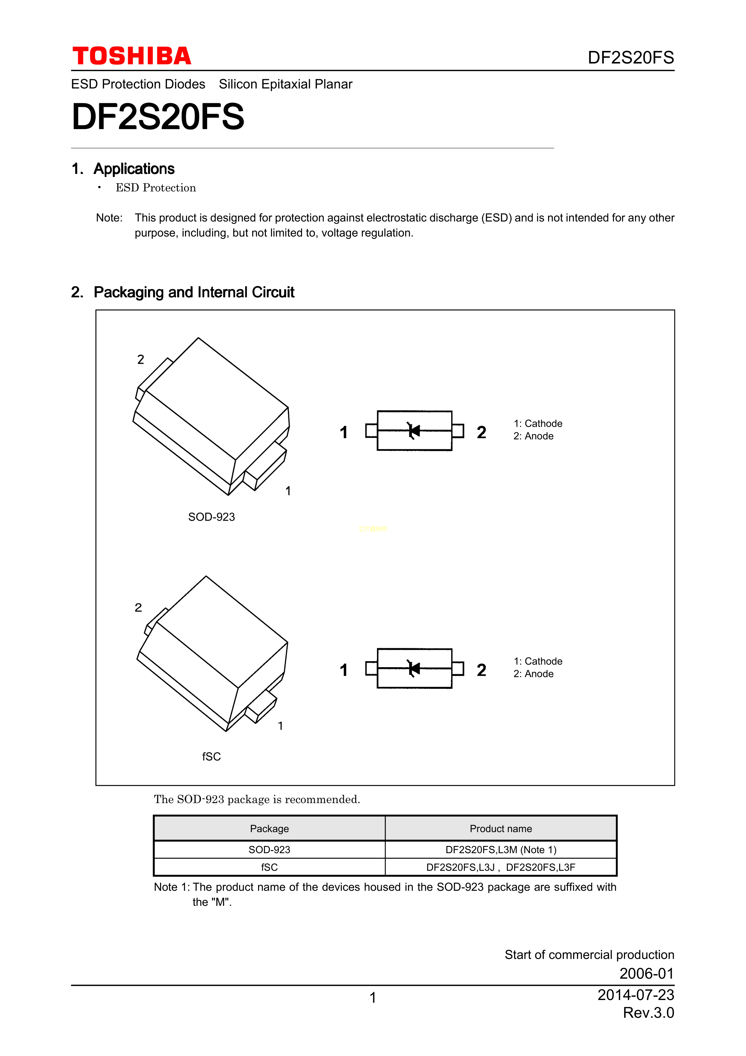 DF2S20FSL3M数据手册SOD-923封装TOSHIBA(东芝)PDF规格书,中英文下载