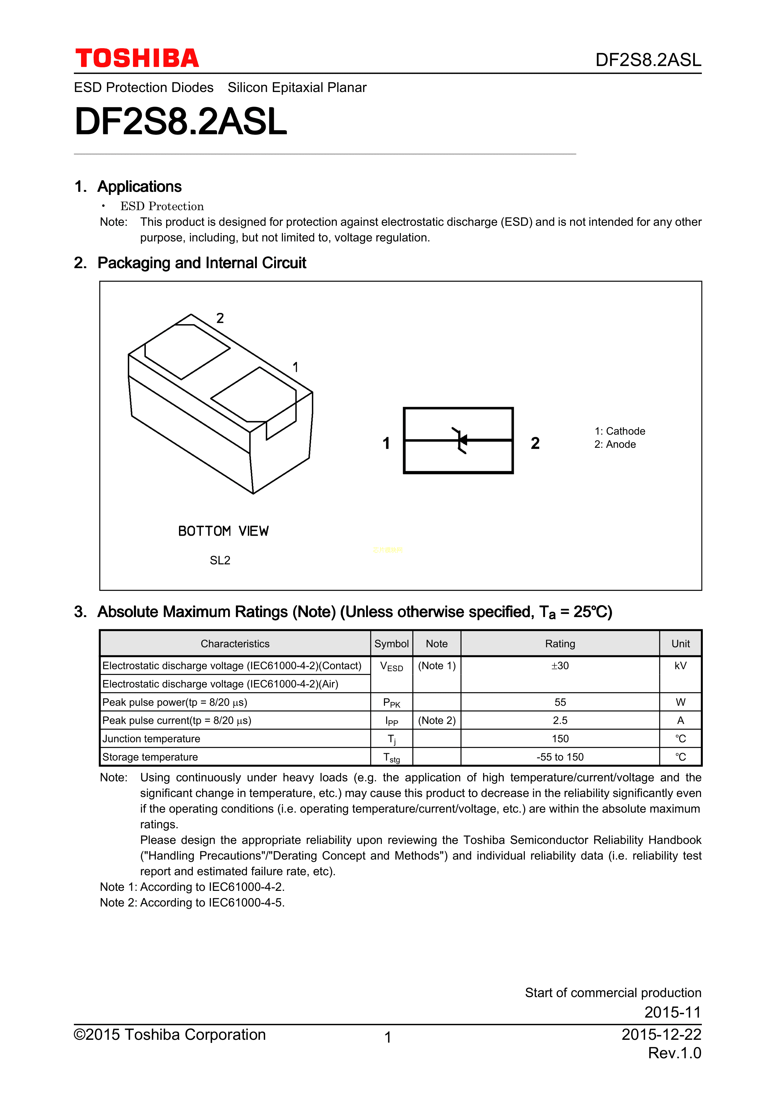 DF2S8.2ASLL3F数据手册SL2封装TOSHIBA(东芝)PDF规格书,中英文下载